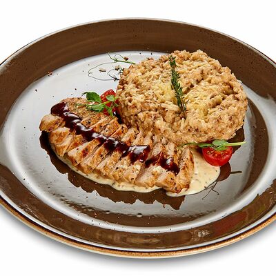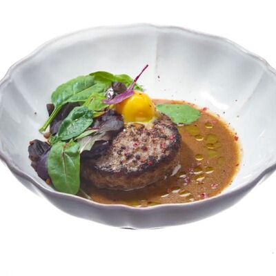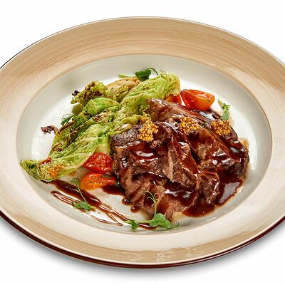 Бифштекс из говядины, перечный соус, желток