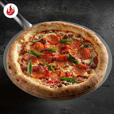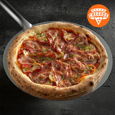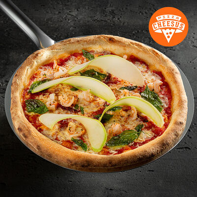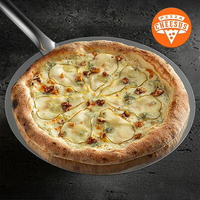 моцарелла;сливочный соус;сыр дорблю;тростниковый сахар;трюфельный соус;груша конференция;неаполитанское тесто;карамелизированный грецкий орех;(диаметр пиццы 28 сантиметров);