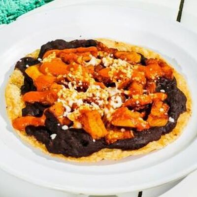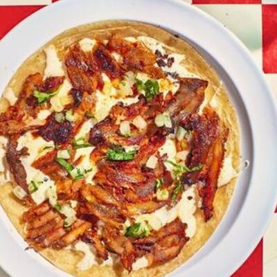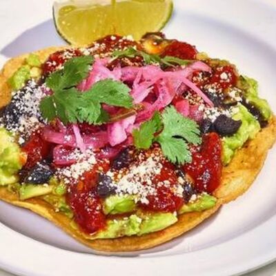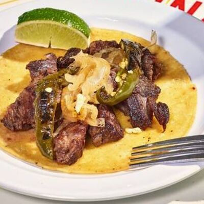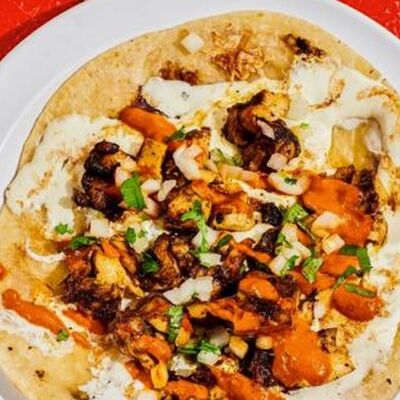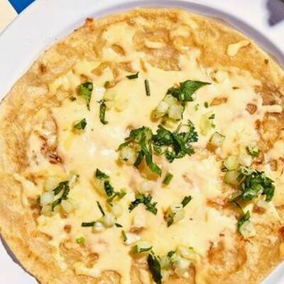 Тортилья из муки, плавленый сыр чихуахуа со смесью лука и кинзы