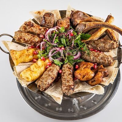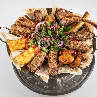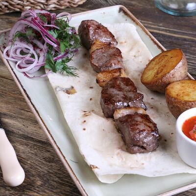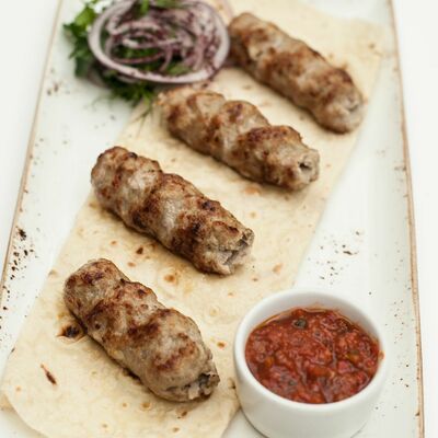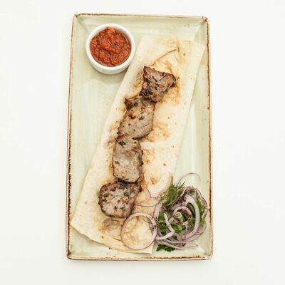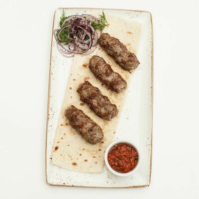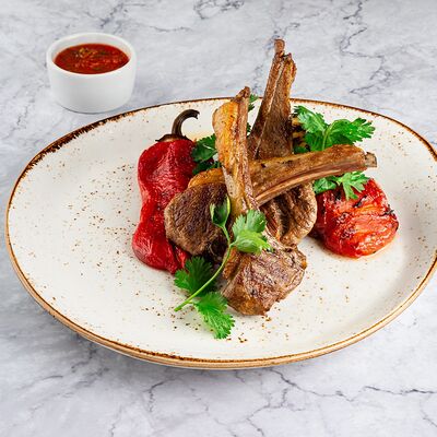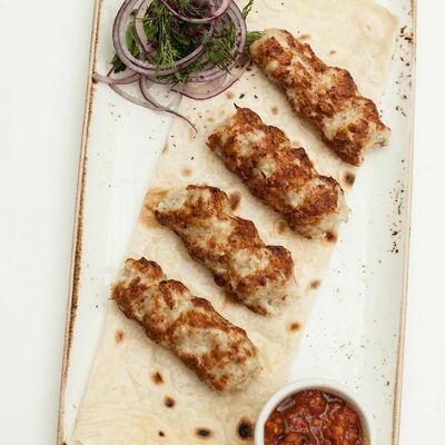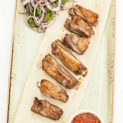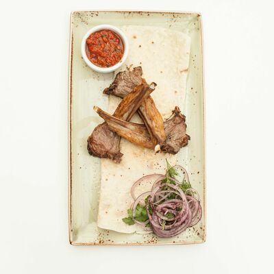 Баранья корейка, петрушка, укроп, лук-репка, сумах, соль, перец свежемолотый, лук красный, аджика