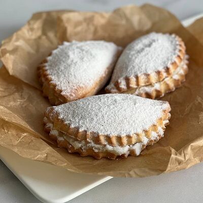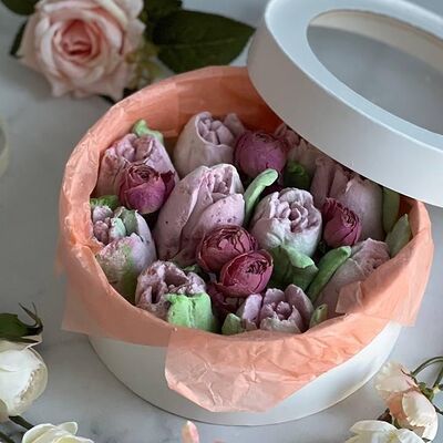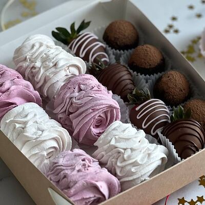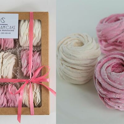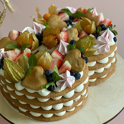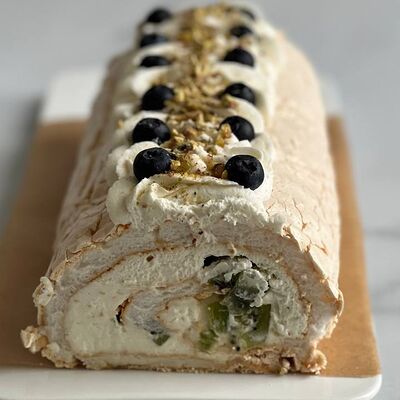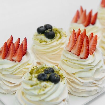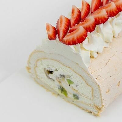 Яичный белок, сахар, сахарная пудра, сыр творожный сливочный, сливки 33%, киви, банан, ягоды свежие сезонные
