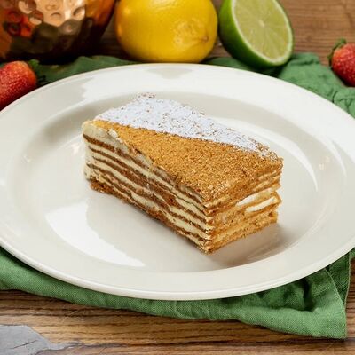 Коржи приготовлены с использованием натурального цветочного меда, прослоены нежным сметанным кремом