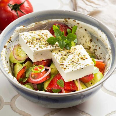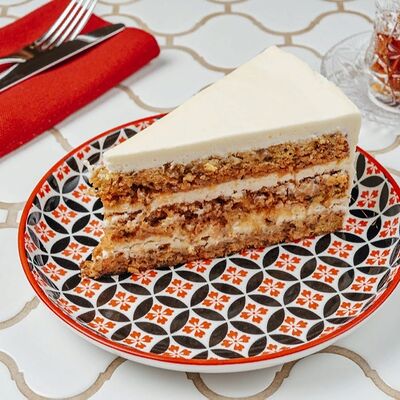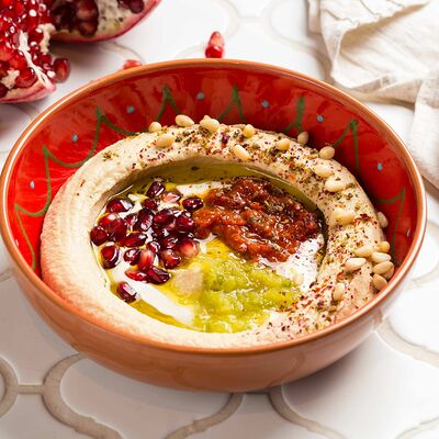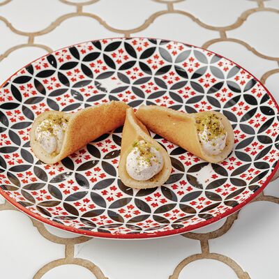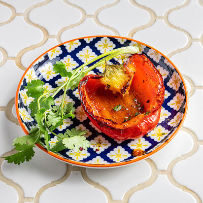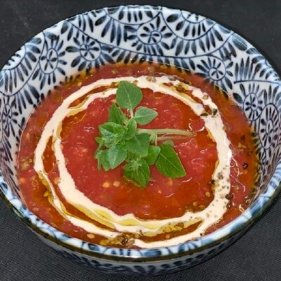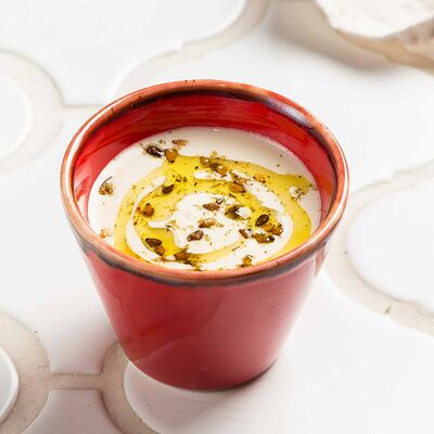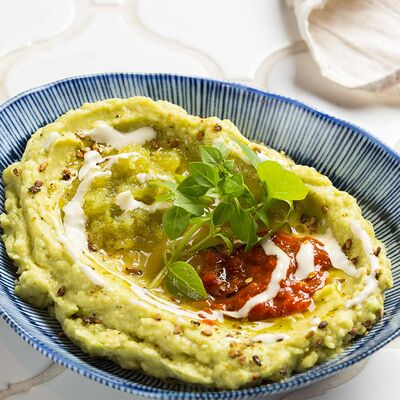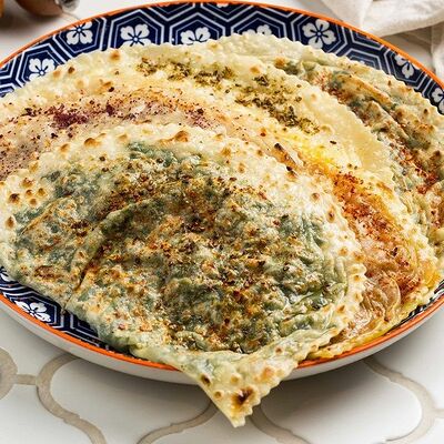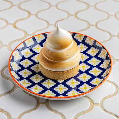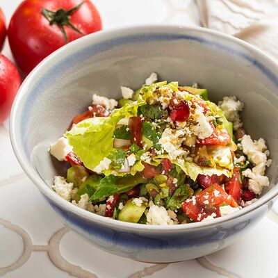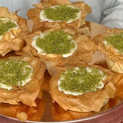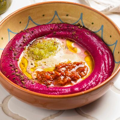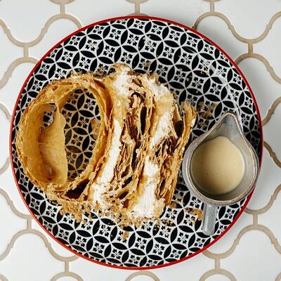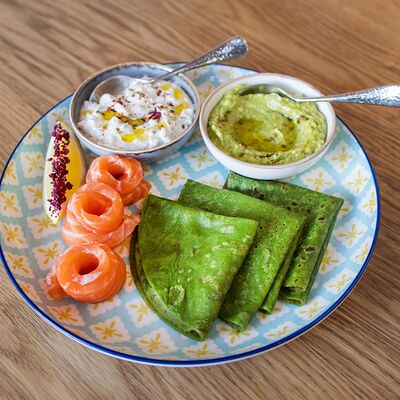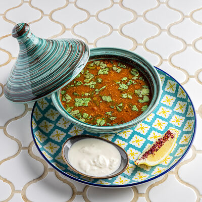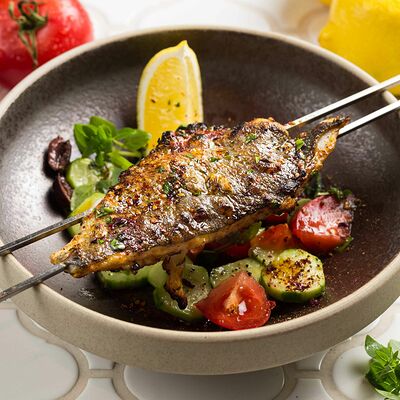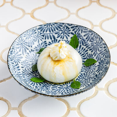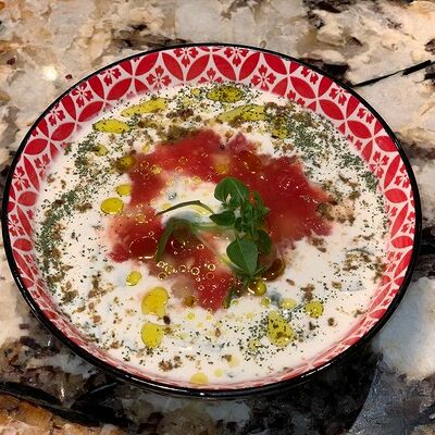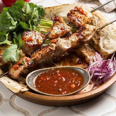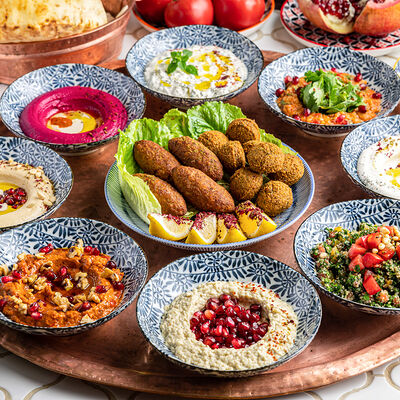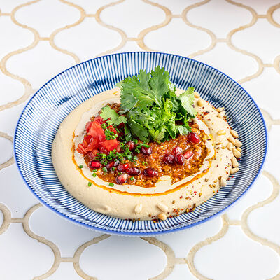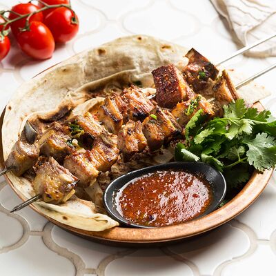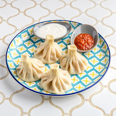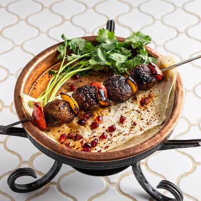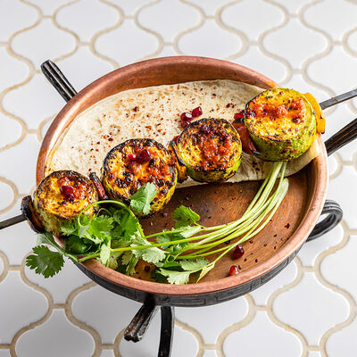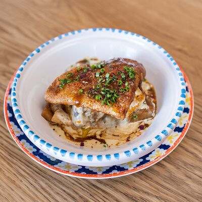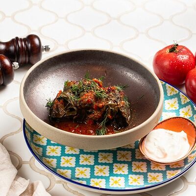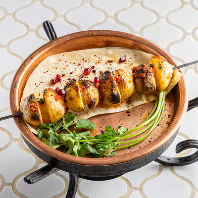 Фарш из баранины, обжаренный во фритюре, каймак, салат романо, соус цитронет, лимон, сумах