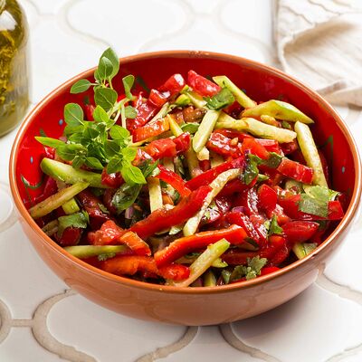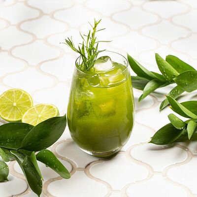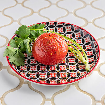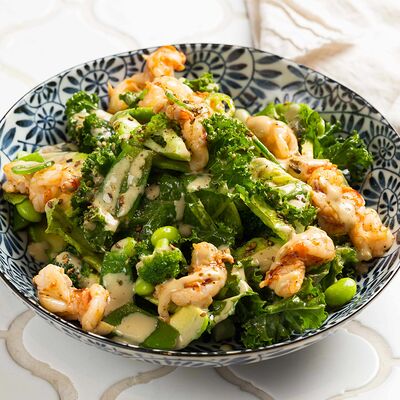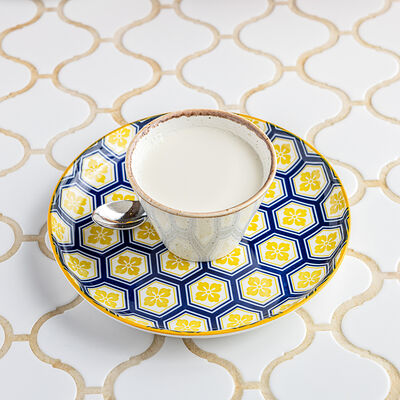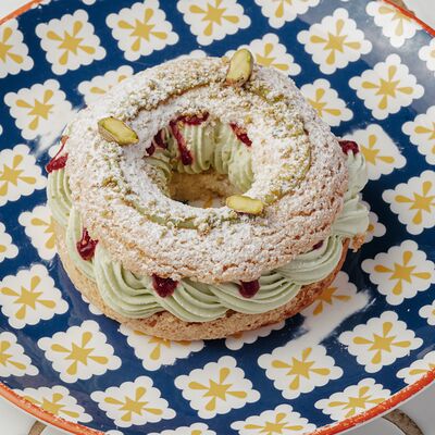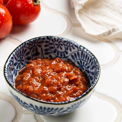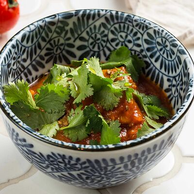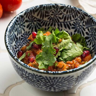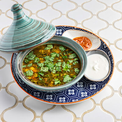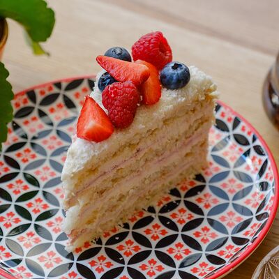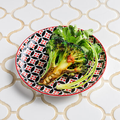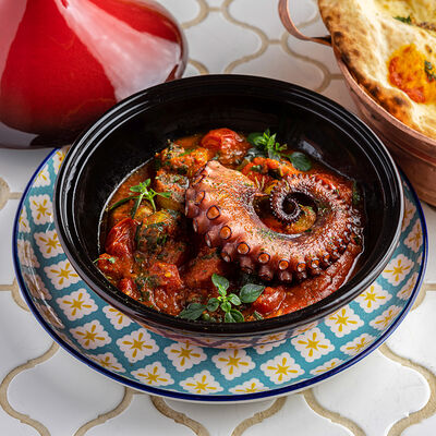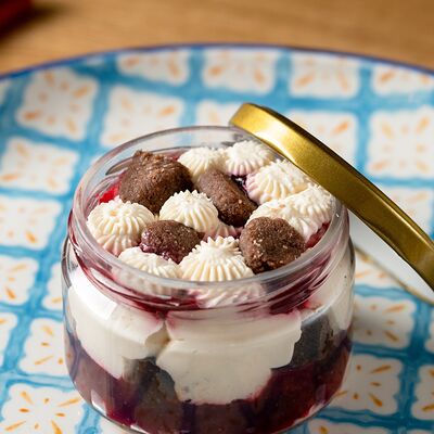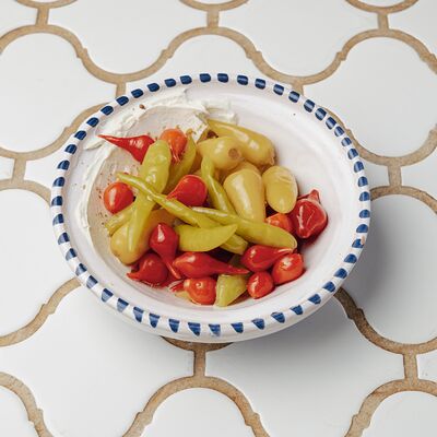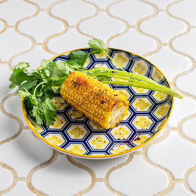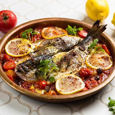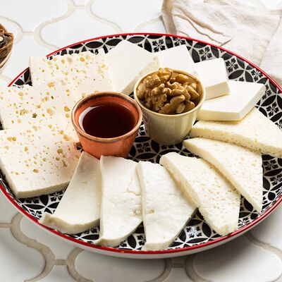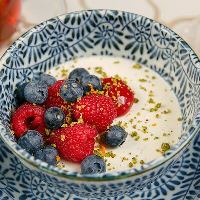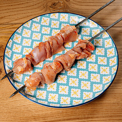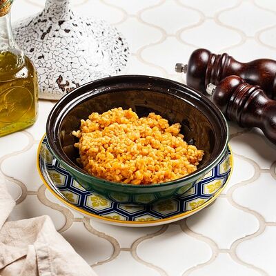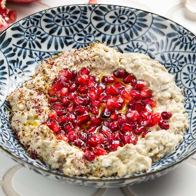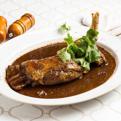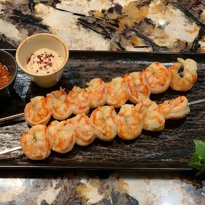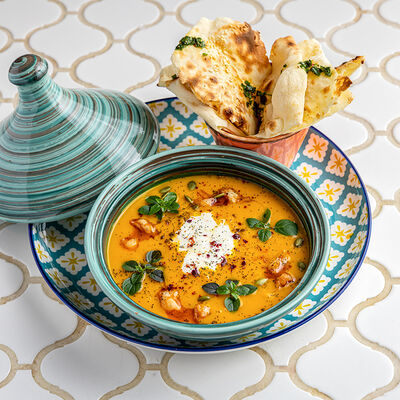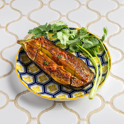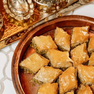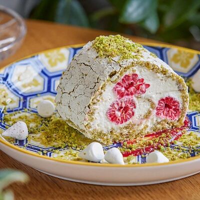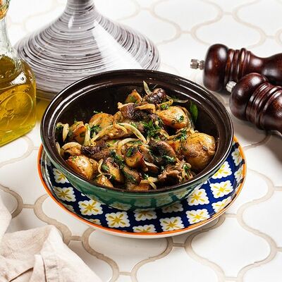 Фарш из баранины, обжаренный во фритюре, каймак, салат романо, соус цитронет, лимон, сумах