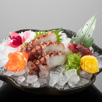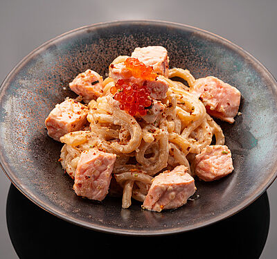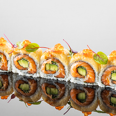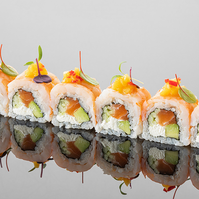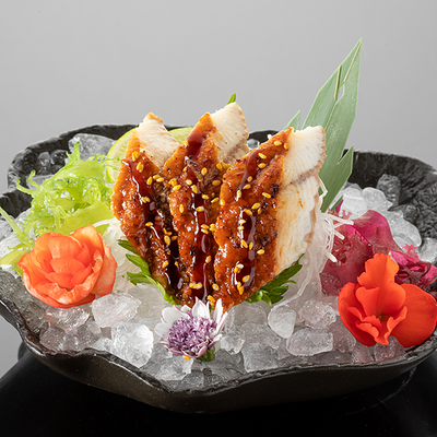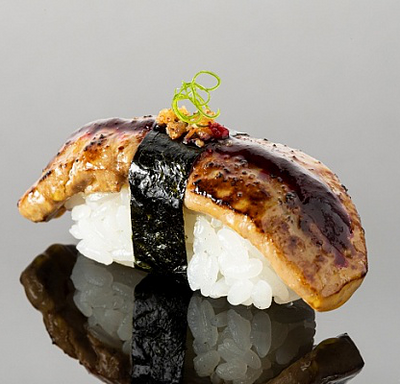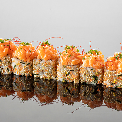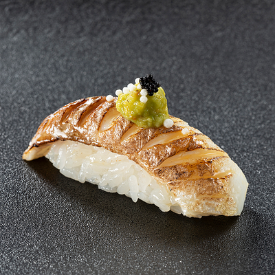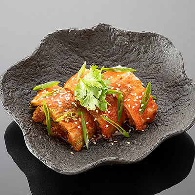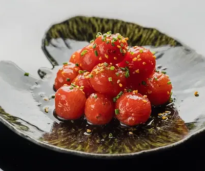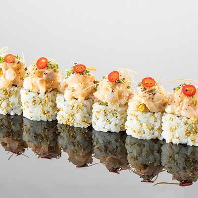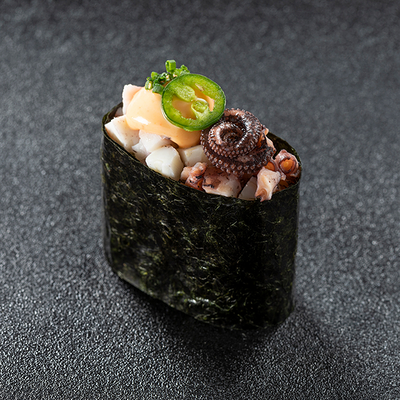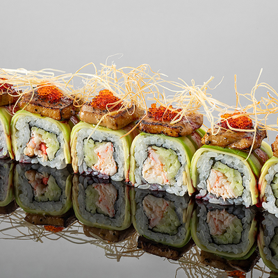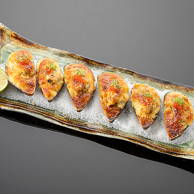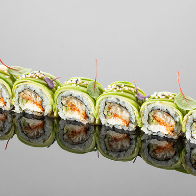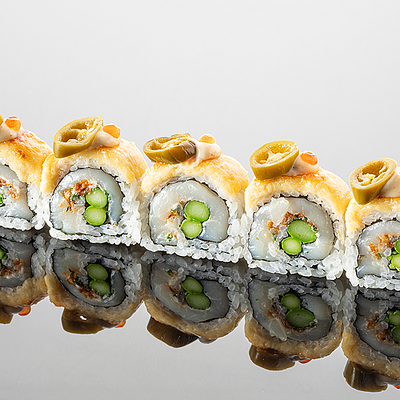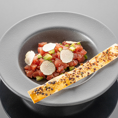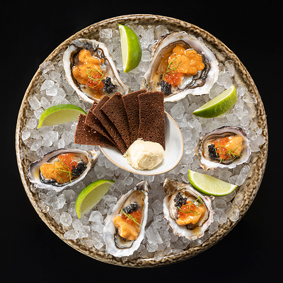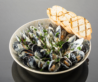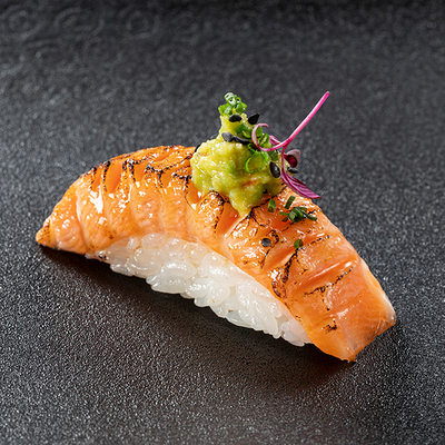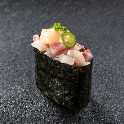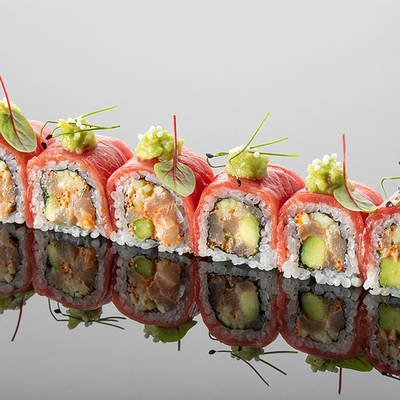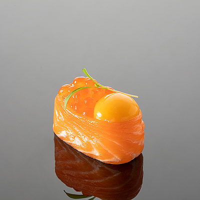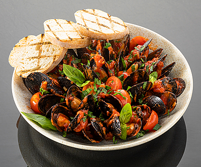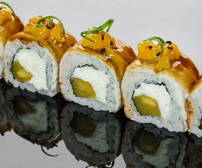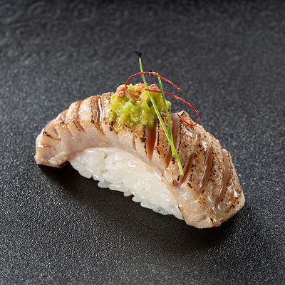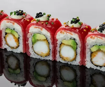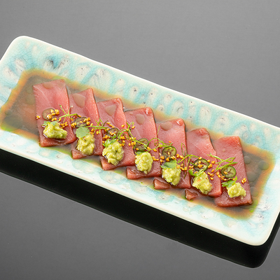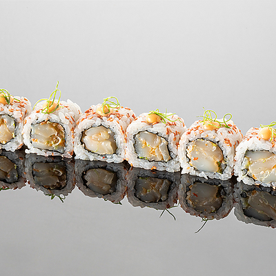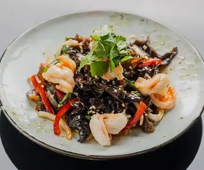 Сибас, соус фирменный, масло базиликовое, грейпфрут, лук красный, кинза