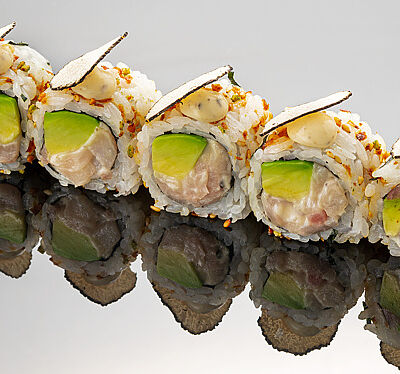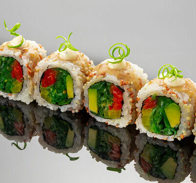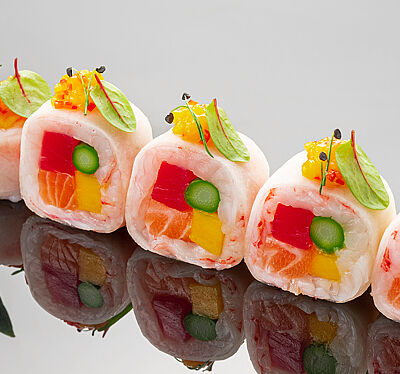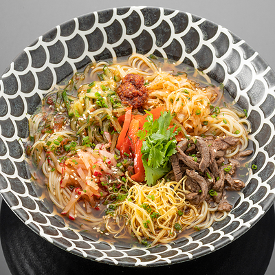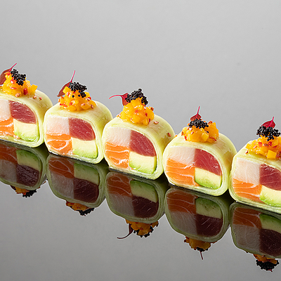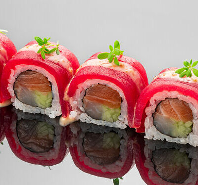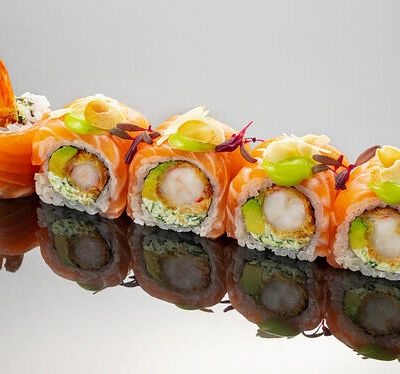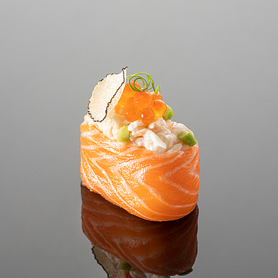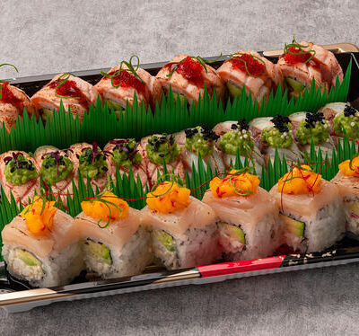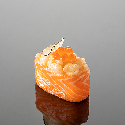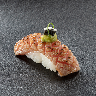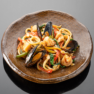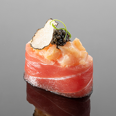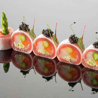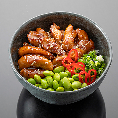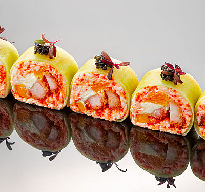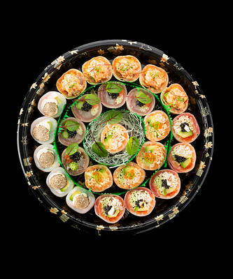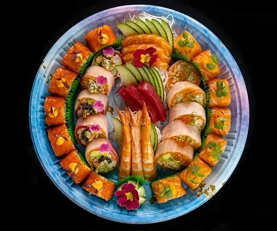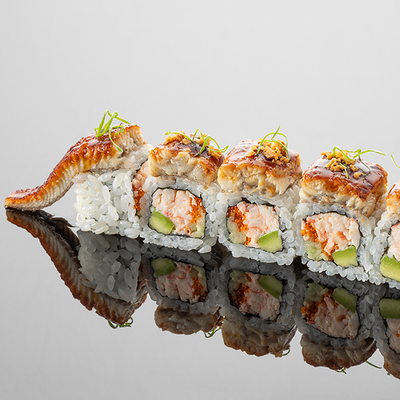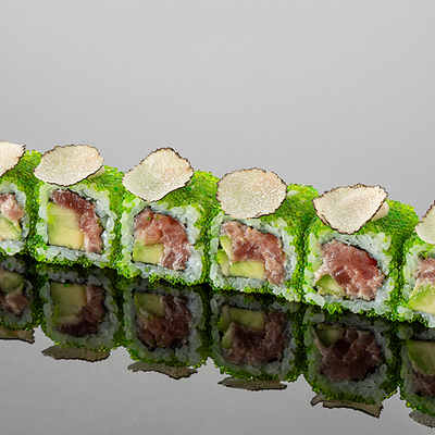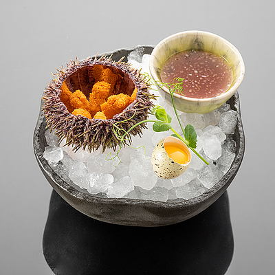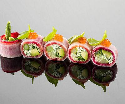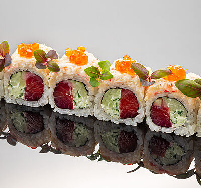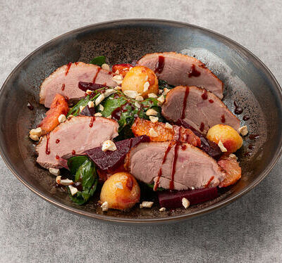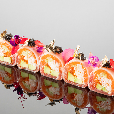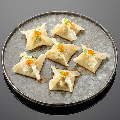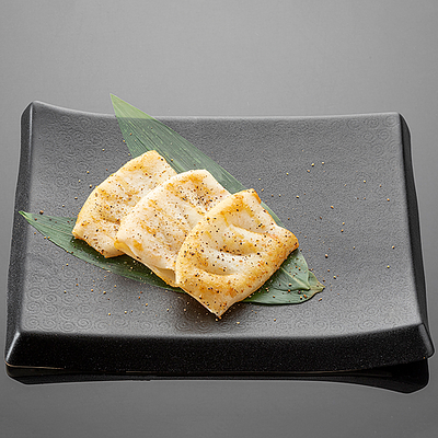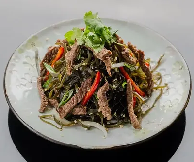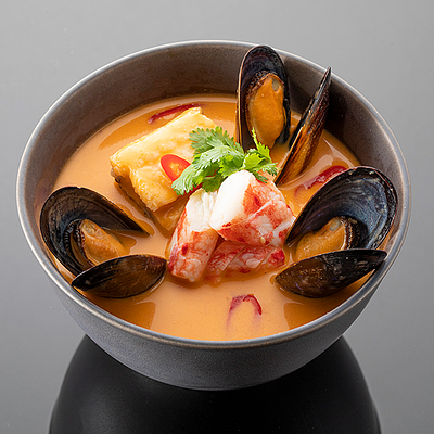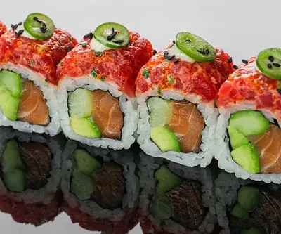Сибас, соус фирменный, масло базиликовое, грейпфрут, лук красный, кинза