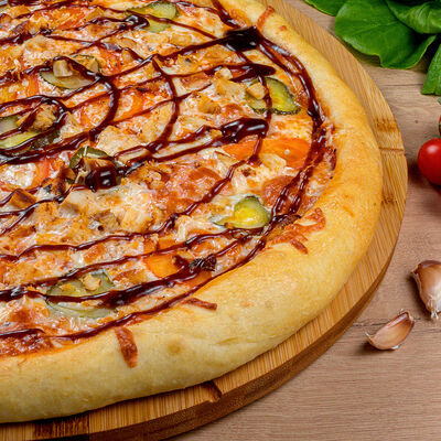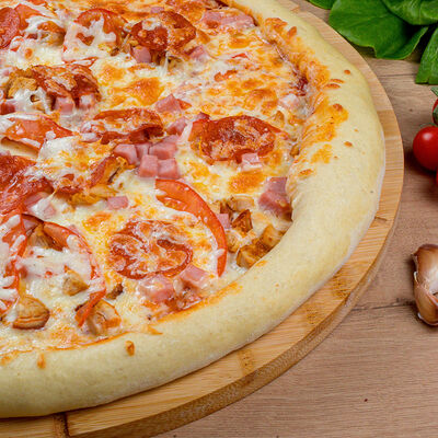 Нежное тесто, фирменный соус из томатов на основе итальянского рецепта, сыр моцарелла, помидоры (33 см)