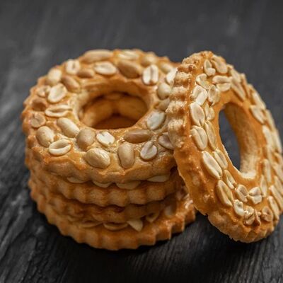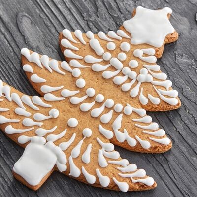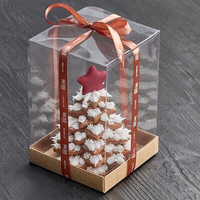 Мука высшего сорта, яйцо куриное, сахар-песок, масло сливочное 82,5%, вода питьевая, сода пищевая, корица молотая, имбирь молотый, шоколад белый, сахарная пудра, лимонный концентрат, краситель пищевой, соль поваренная пищевая. Рецепт нашего пряничного теста основан на русских традициях изготовления и росписи пряников. Ёлочки изготавливаются и расписываются вручную. Они станут приятным и вкусным подарком