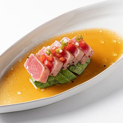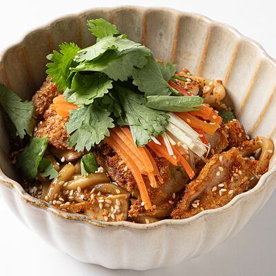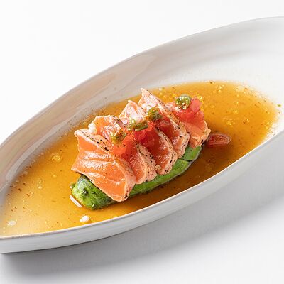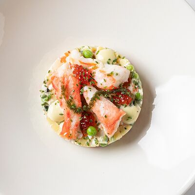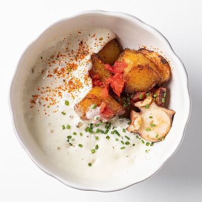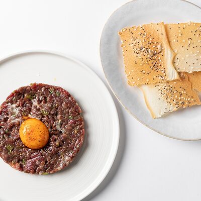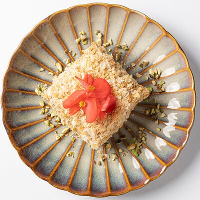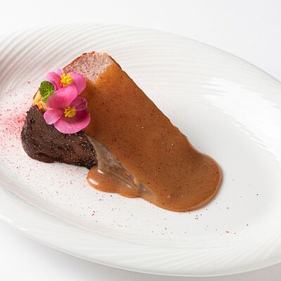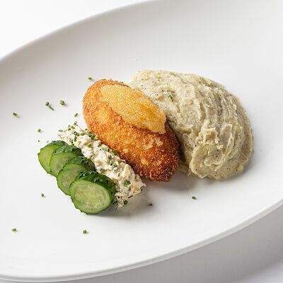 Стейк из говядины с битым картофелем и шпинатом доставка