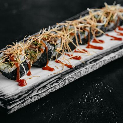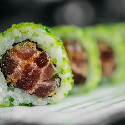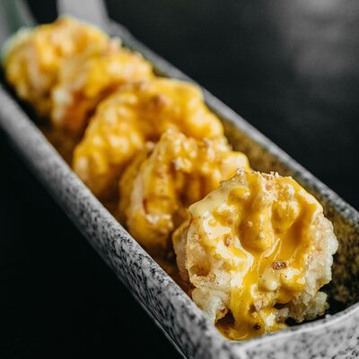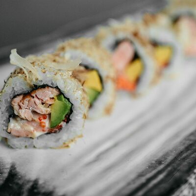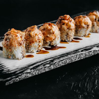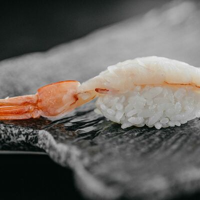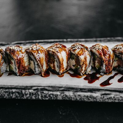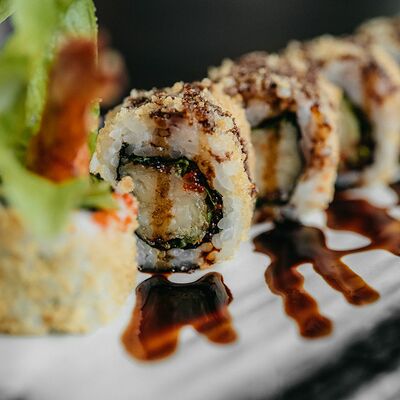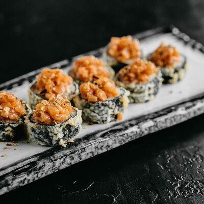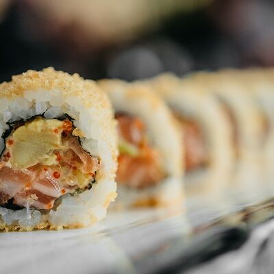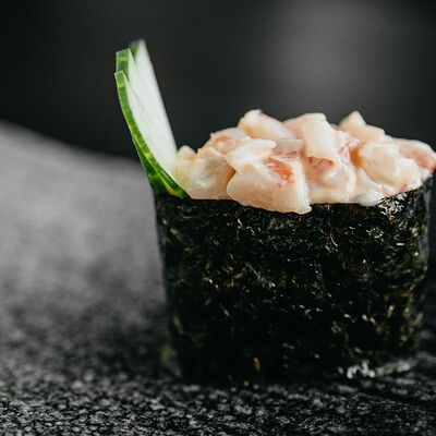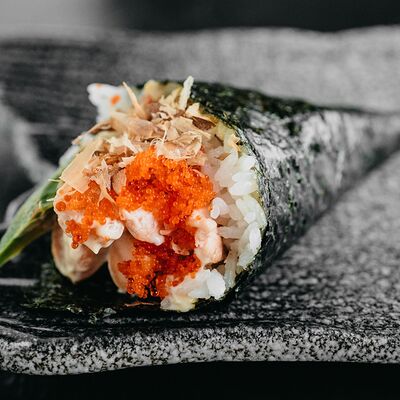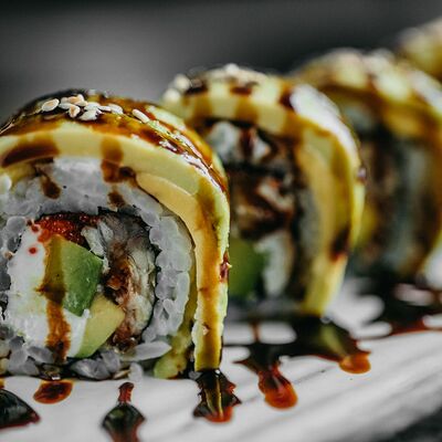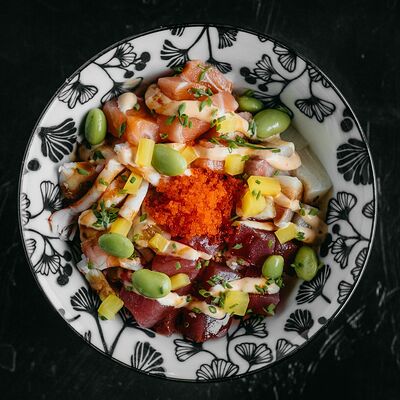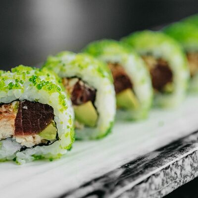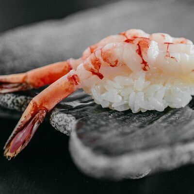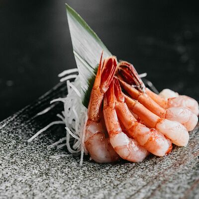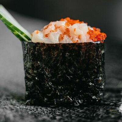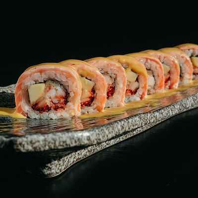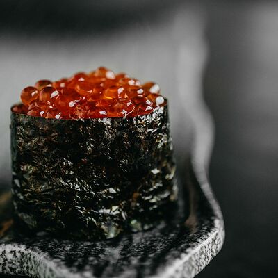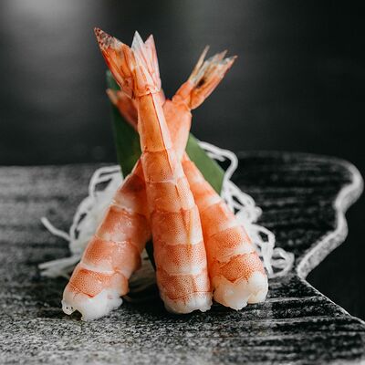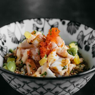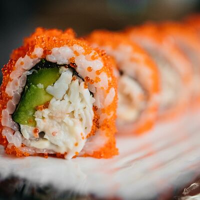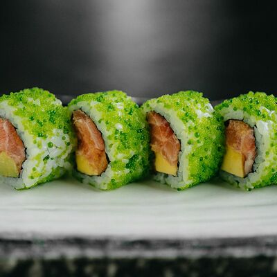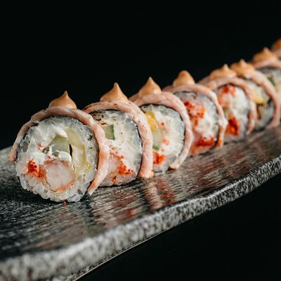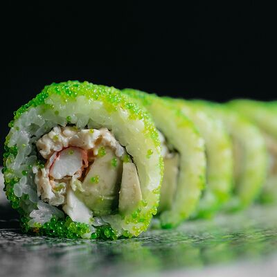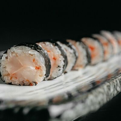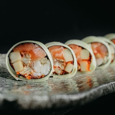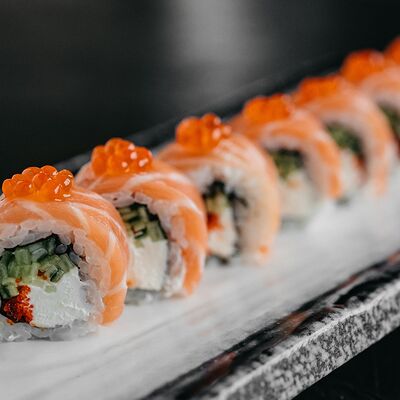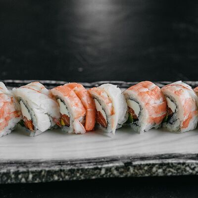 Креветка 16\20, лосось охлажденный, хамачи, зеленые соевые бобы Эдамаме, икра тобико, соус Унаги