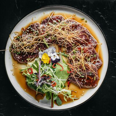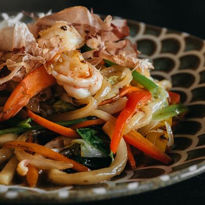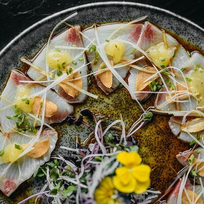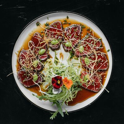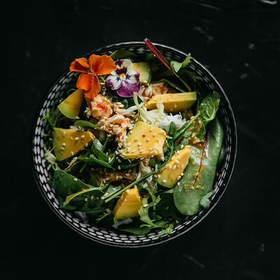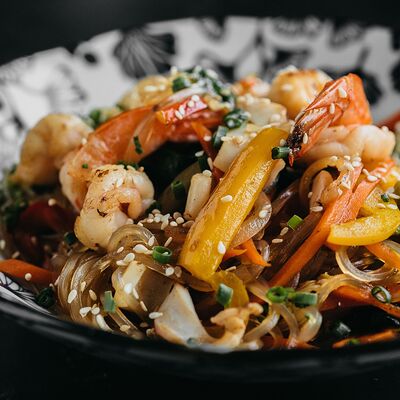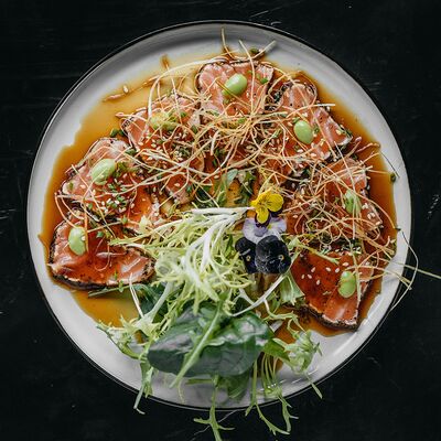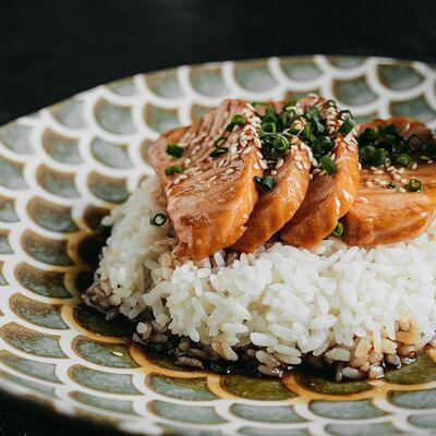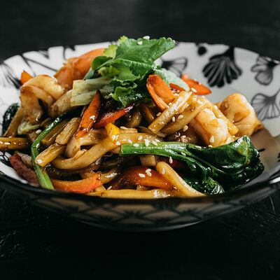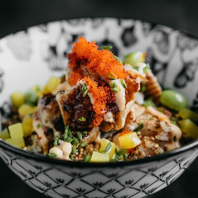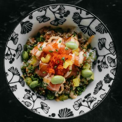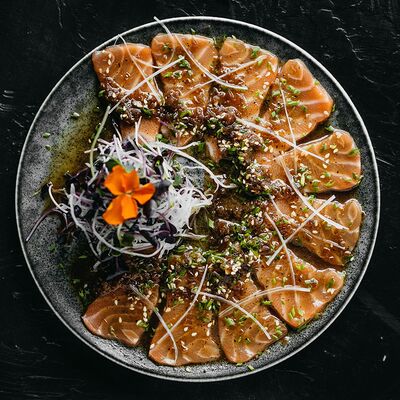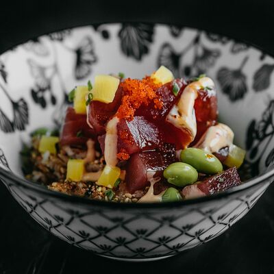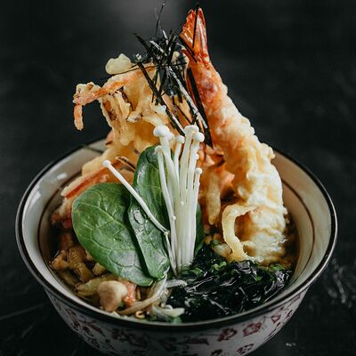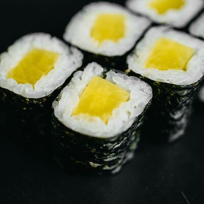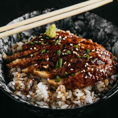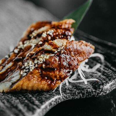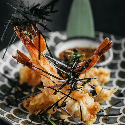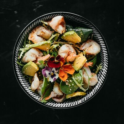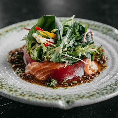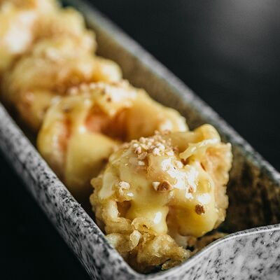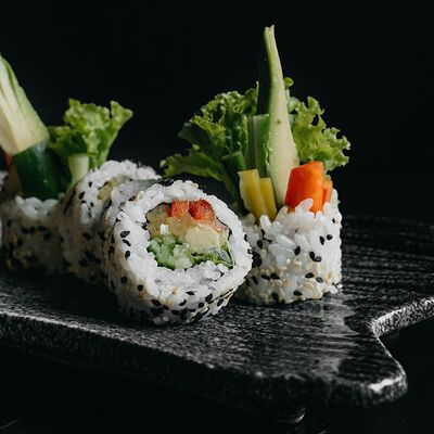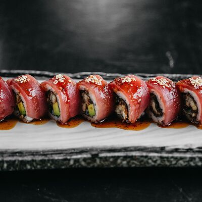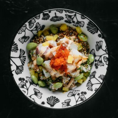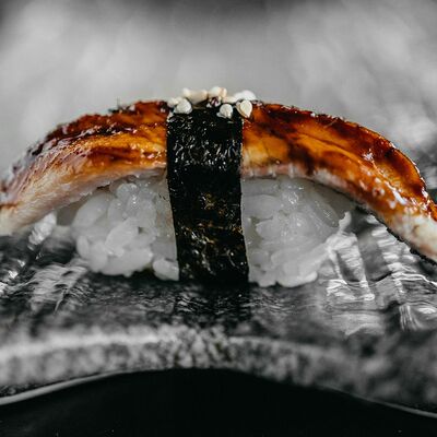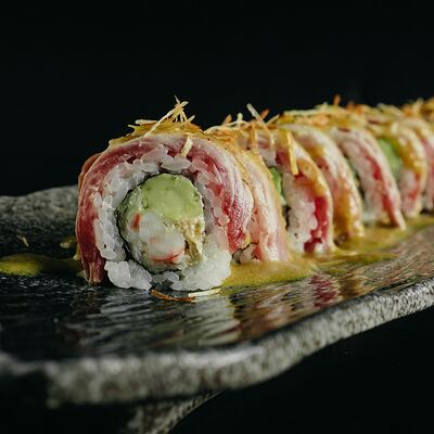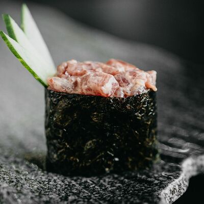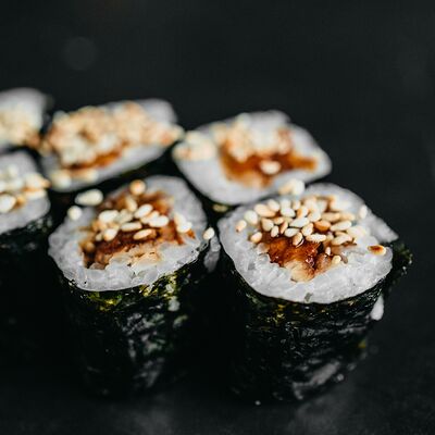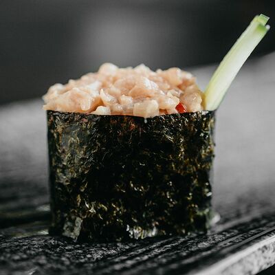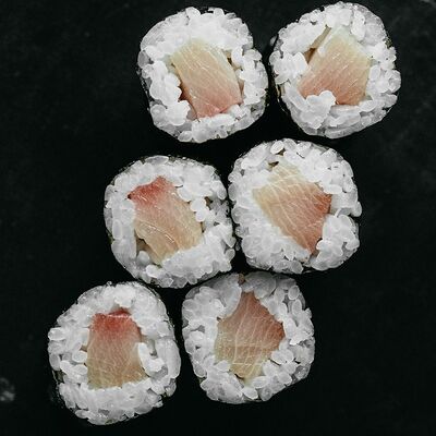 Креветка 16\20, лосось охлажденный, хамачи, зеленые соевые бобы Эдамаме, икра тобико, соус Унаги