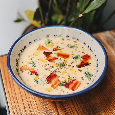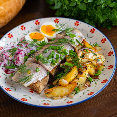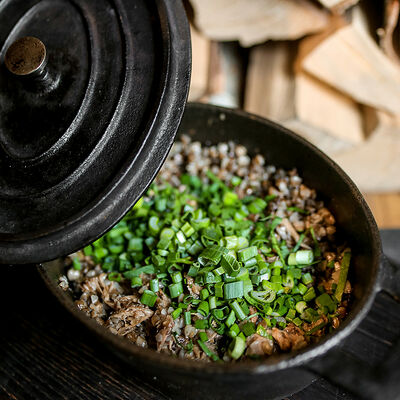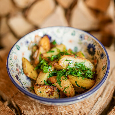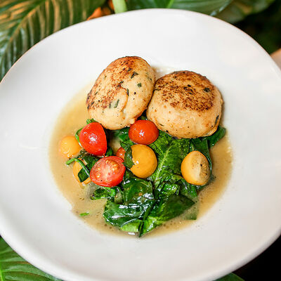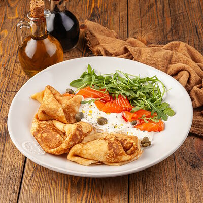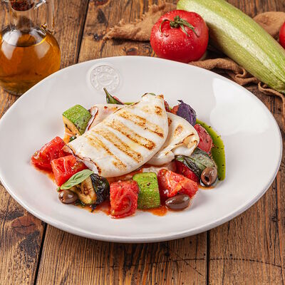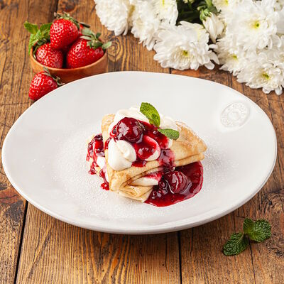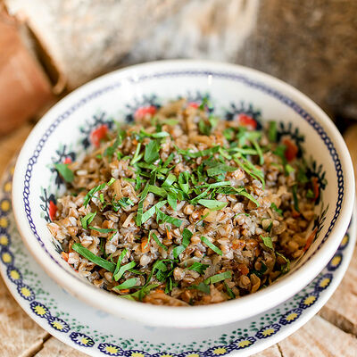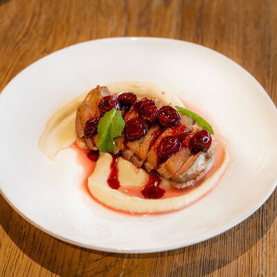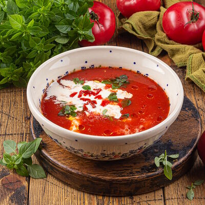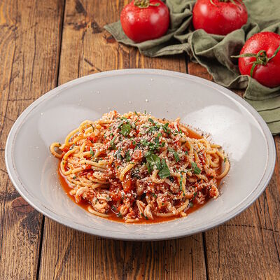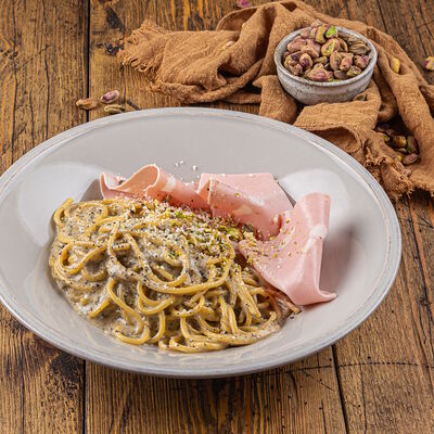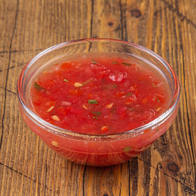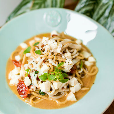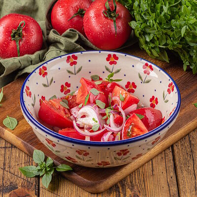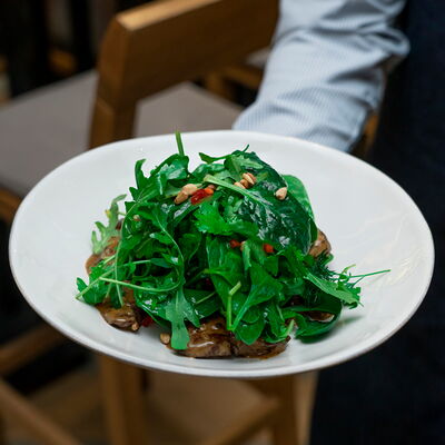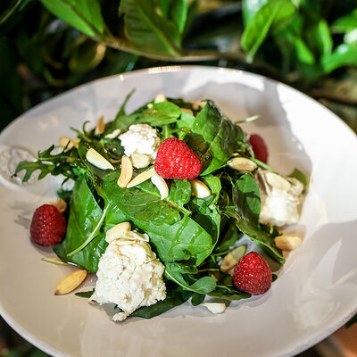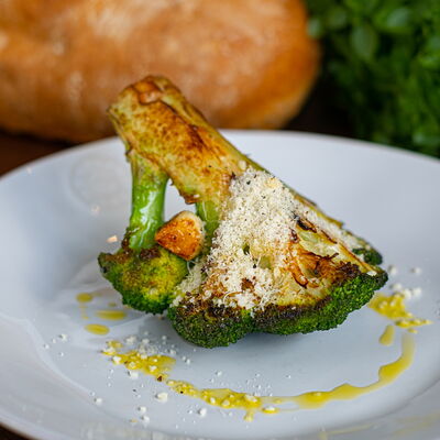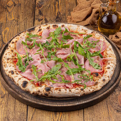 Фокачча из дровяной печи с нежной домашней Страчателлой, сладкими узбекскими помидорами, запеченным красным перцем и россыпью измельченных фисташек и мятой