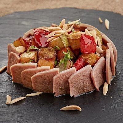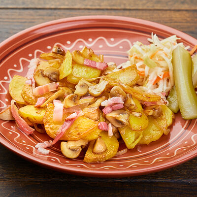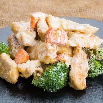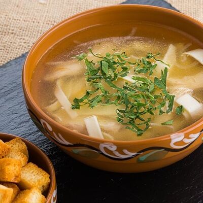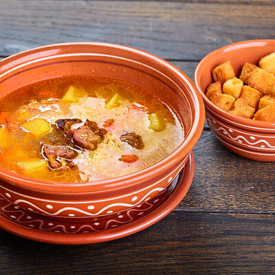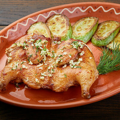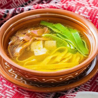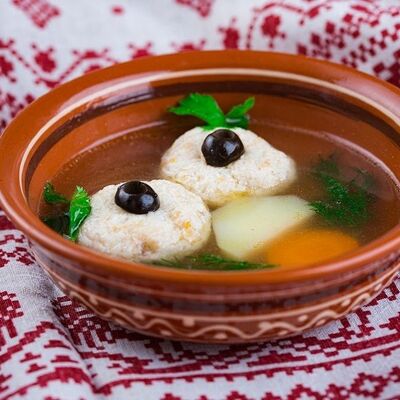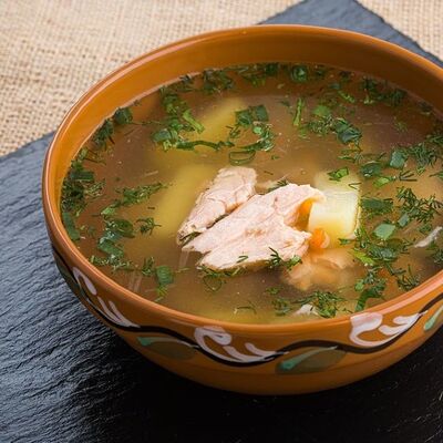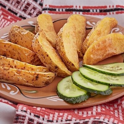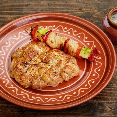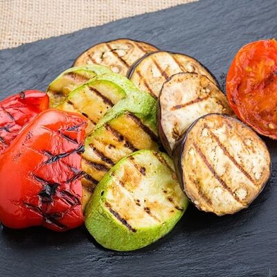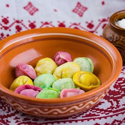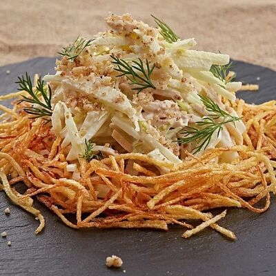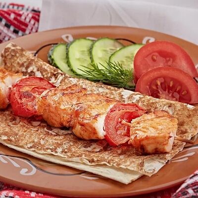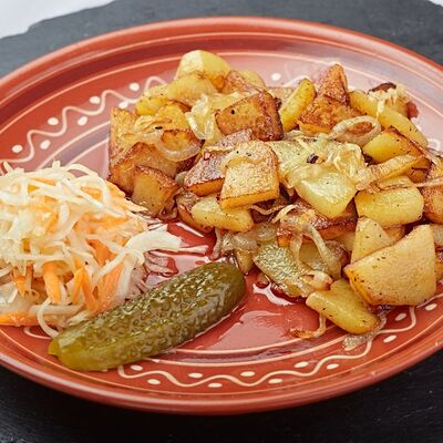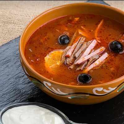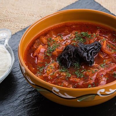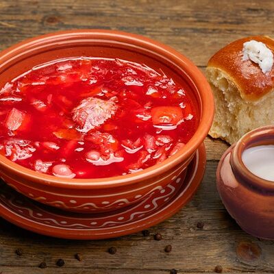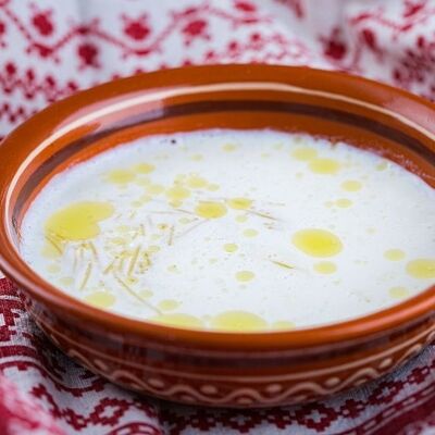 Из свежих огурцов, помидоров, редиса, красного репчатого лука, кинзы, укропа, базилика. Заправляется маслом душистым