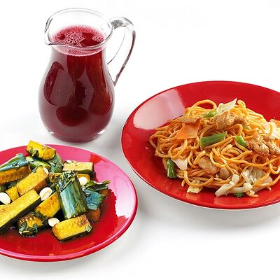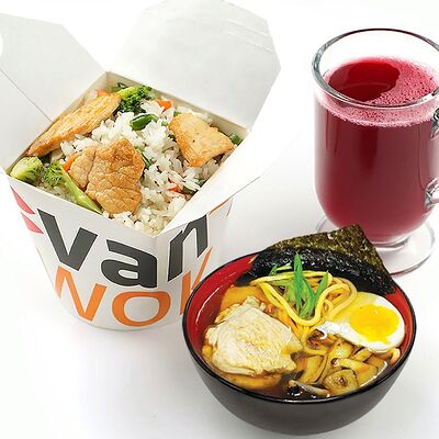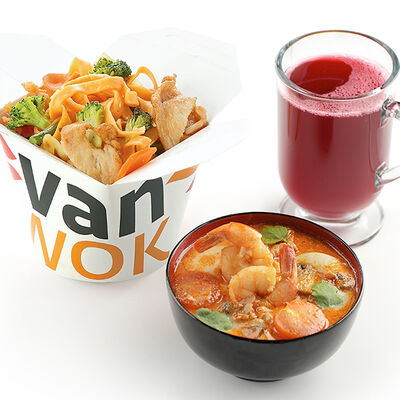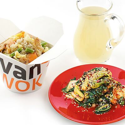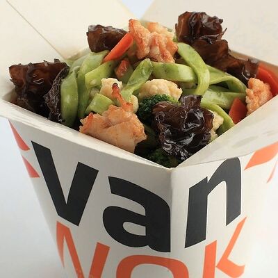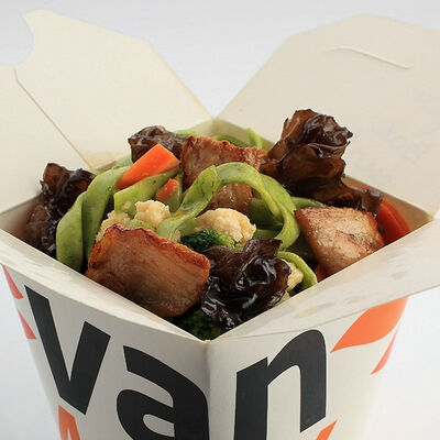 Вок овощная смесь, древесные грибы и шиитаке в очень остром соусом Жаркая Азия доставка