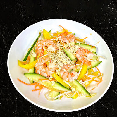 Креветки, кальмары, салат айсберг, ананас, огурцы