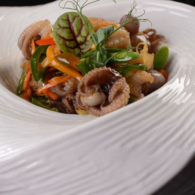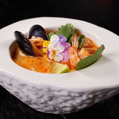Креветки, мидии, кальмар, лосось, специи, сливки, соевая паста
