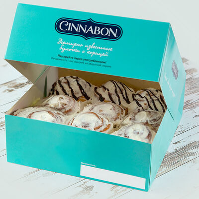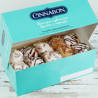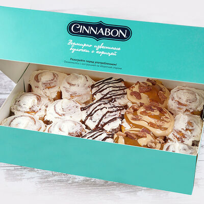 9 минибонов, 3 мини-шокобона, 3 мини-пеканбона. Пшеничная смесь, маргарин, вода, дрожжи, корица, коричневый сахар, какао, сыр сливочный, сахарная пудра, экстракт ванили, экстракт лимона, орех пекан, карамель. Разогреть перед употреблением