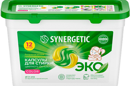 Капсулы для стирки SYNERGETIC COLOR 12 шт