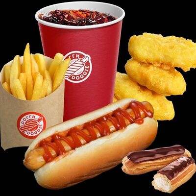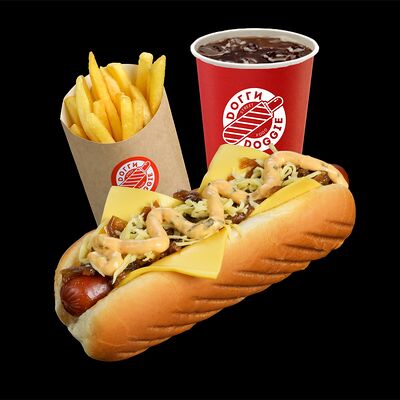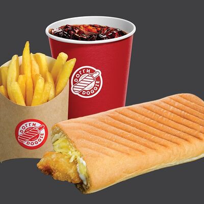 Комбо со Шримп Догги, с креветками в хрустящей панировке, с золотистым картофелем фри и холодным напитком на выбор - отличный выбор для настоящих любителей нежной классики