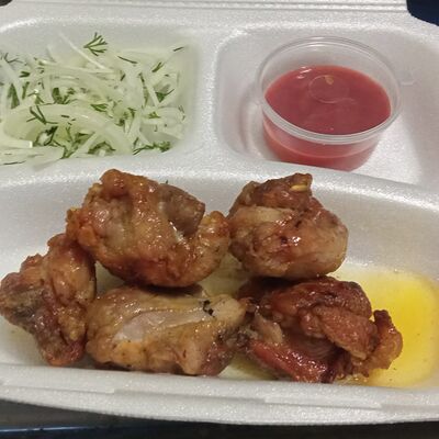 Лаваш, картофель фри, капуста, огурцы, помидоры, курица, чесночный соус