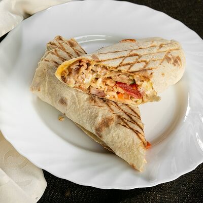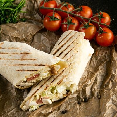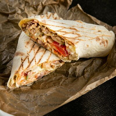 Свинина, свежий помидор, капуста, маринованный огурец, лаваш, соус томатный и майонез