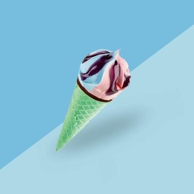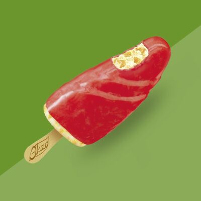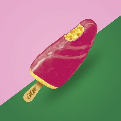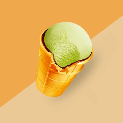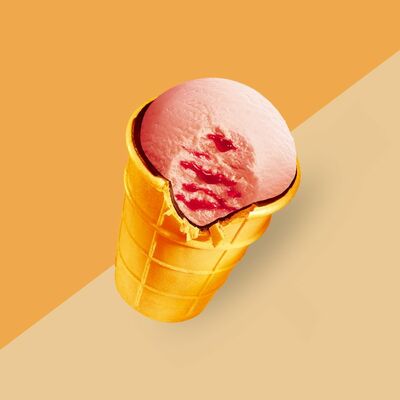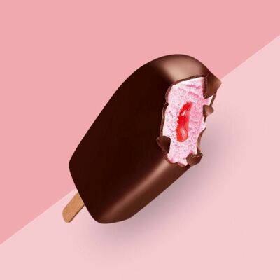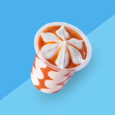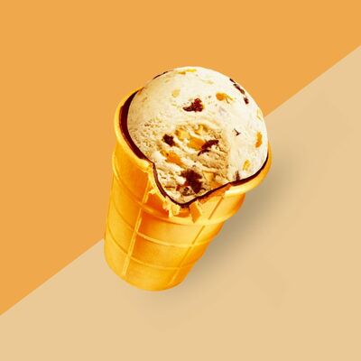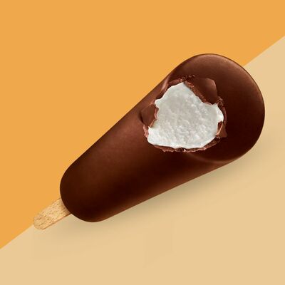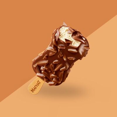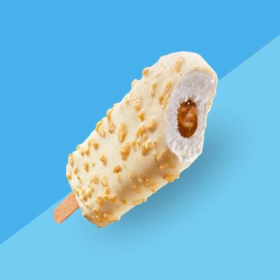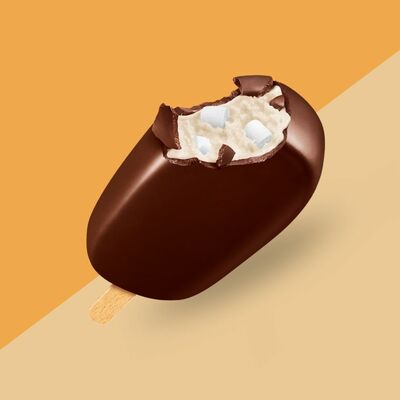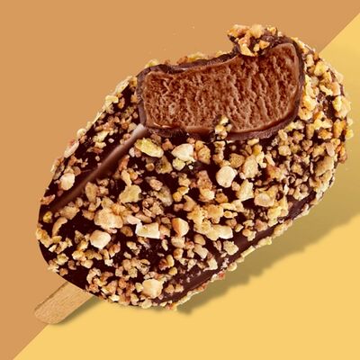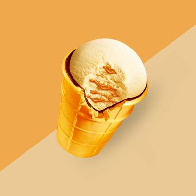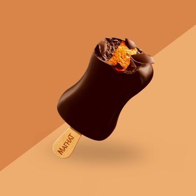 Сливочное мороженое с жидким карамельным соусом внутри капсулы из шоколада