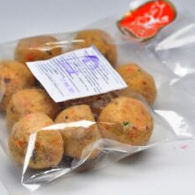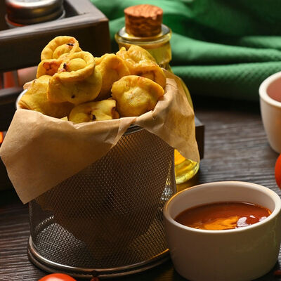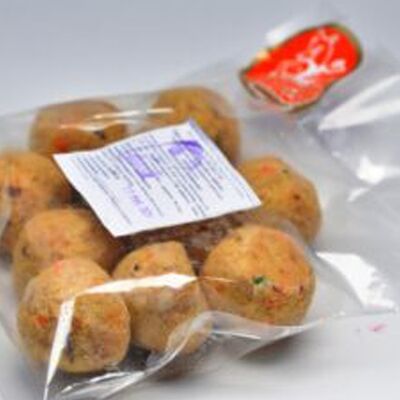 Замороженный мясной полуфабрикат в тестовой оболочке с начинкой из мясного фарша (свинина, говядина), лука с добавлением соли, чеснока, черного перца