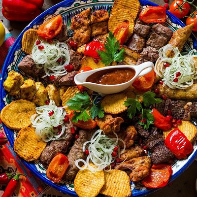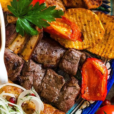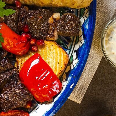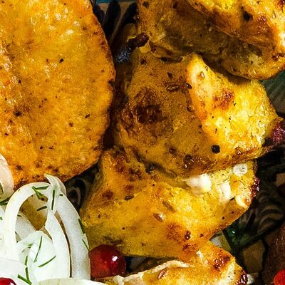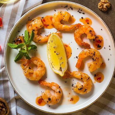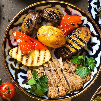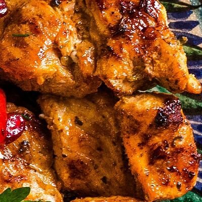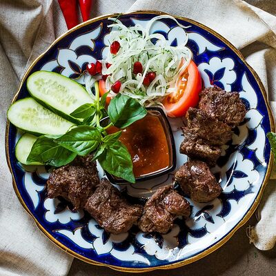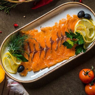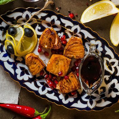 Сёмга, засоленная в восточной смеси приправ, подается с лимоном