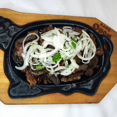 Печень, сердце, говядина, почки, лук, специи