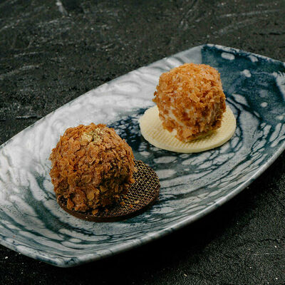 Карамельный бисквит, крем-Бейлиз, сливки, маскарпоне, фундук