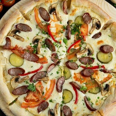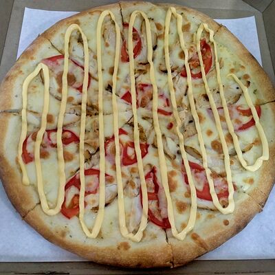Курица, капуста пекинская, помидор, соус цезарь, сыр моцарелла (32 см)