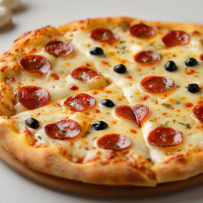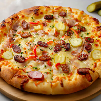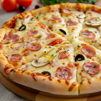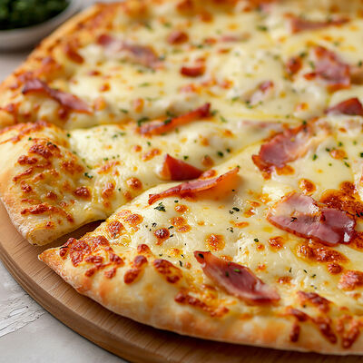 Сыры: моцарелла, пармезан, чеддер, маасдам, тильзитер, соус бешамель (30 см)