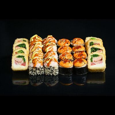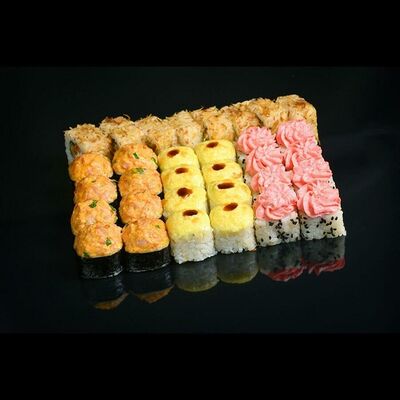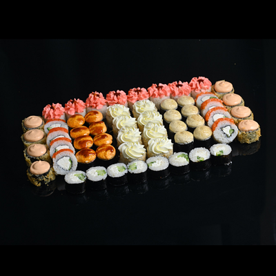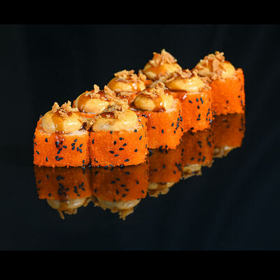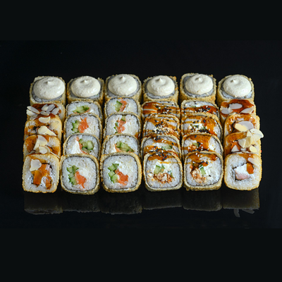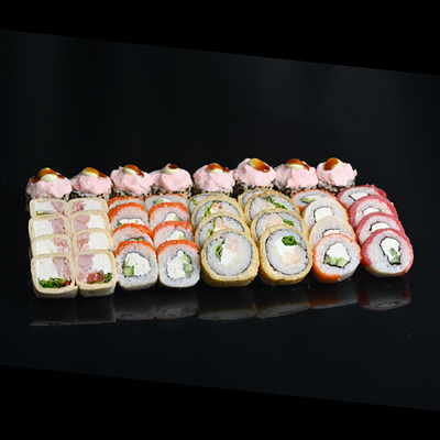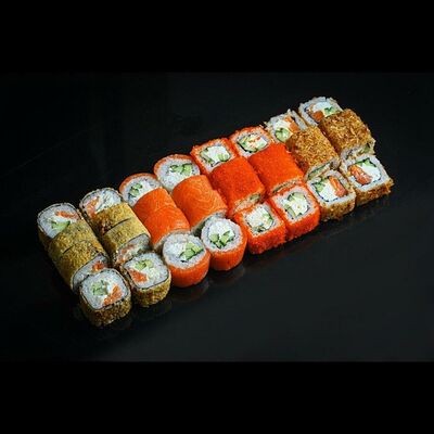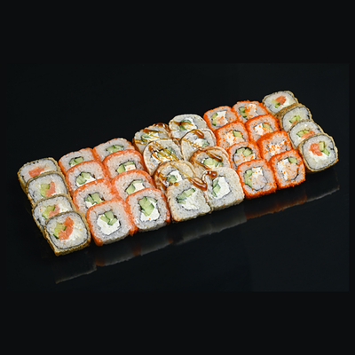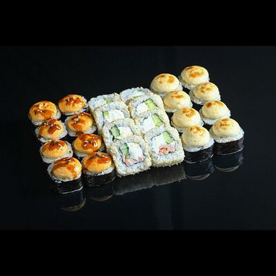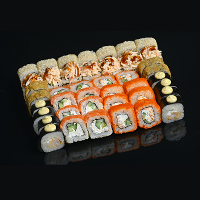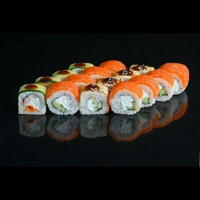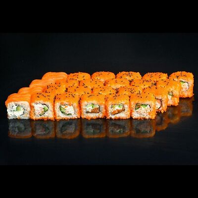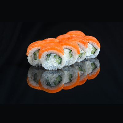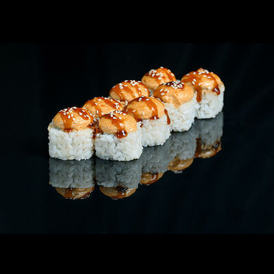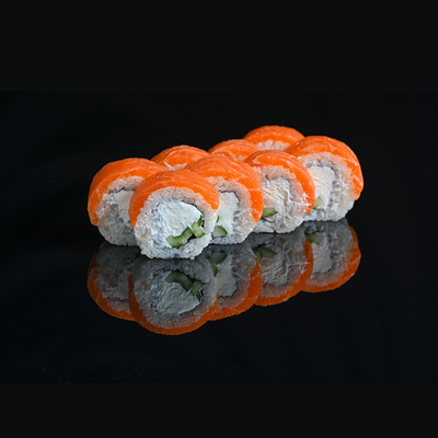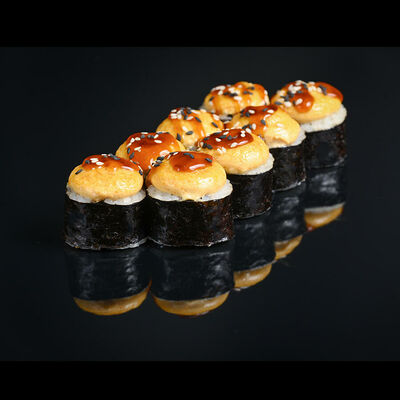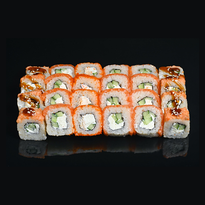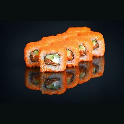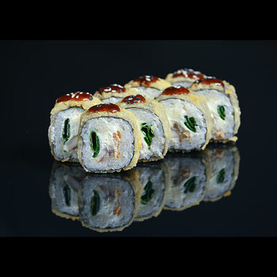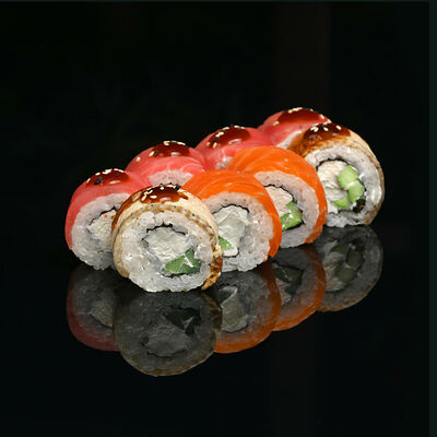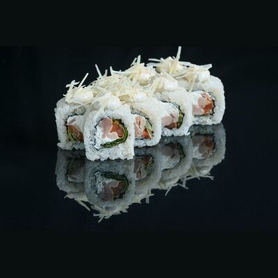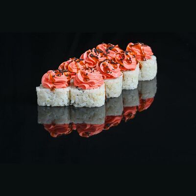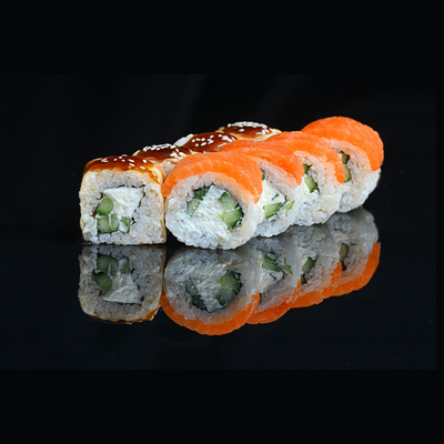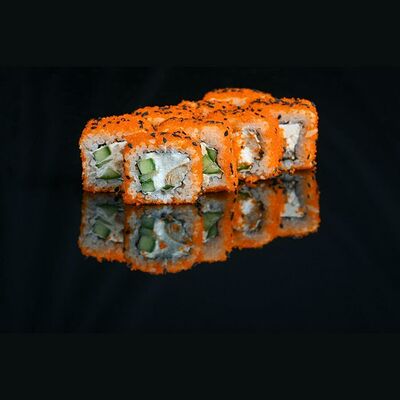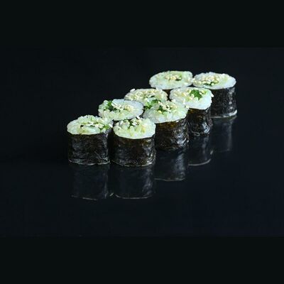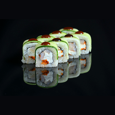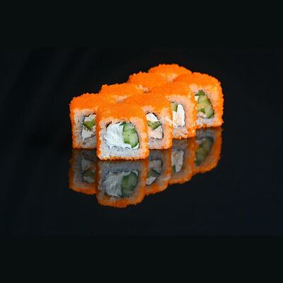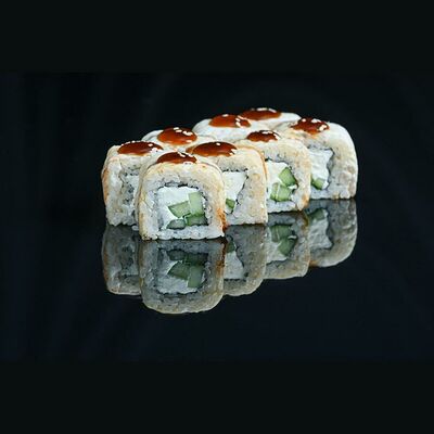 Сыр сливочный, огурец, краб-крем, соус васаби, унаги соус