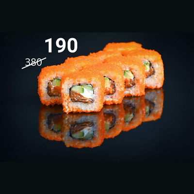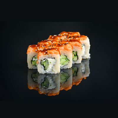 Сыр сливочный, огурец, краб-крем, соус васаби, унаги соус