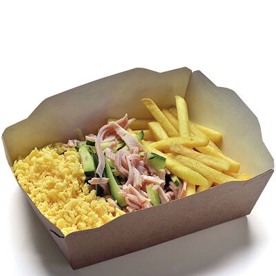 Лапша, лосось, лук, фасоль стручковая, перец болгарский, сливочный соус