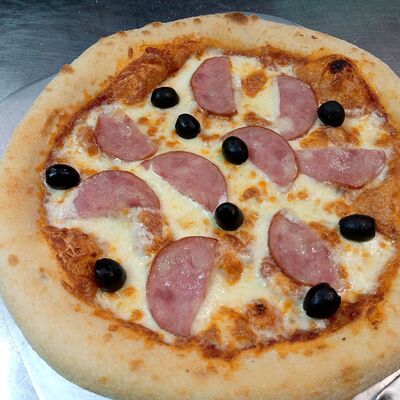Тесто от Sancha с воздушным бортом и тонкой основой. В начинку входят: фирменный томатный соус, сыр моцарелла, сочная ветчина, полукопчёный бекон, томаты, базилик (30см)