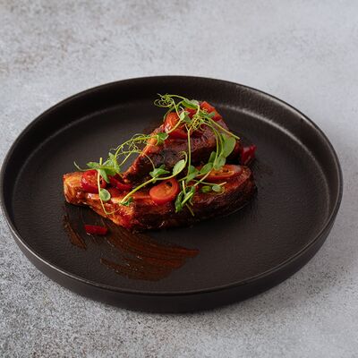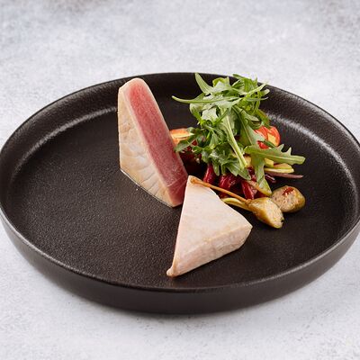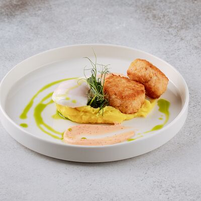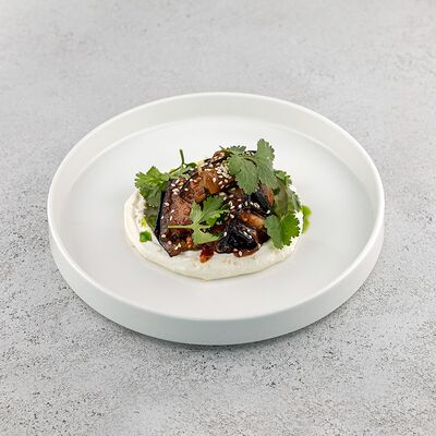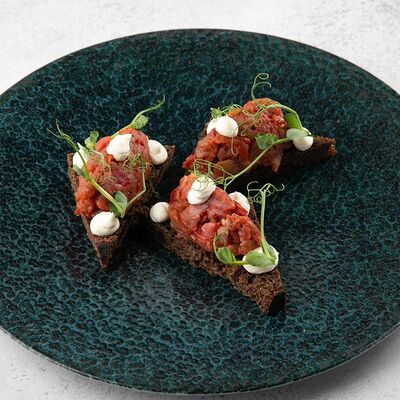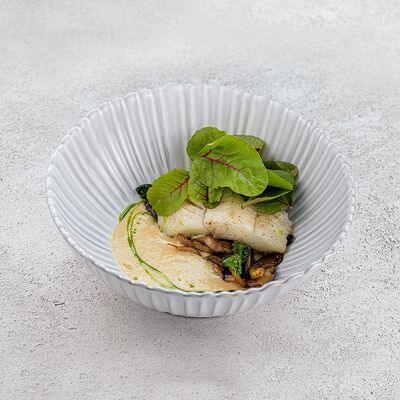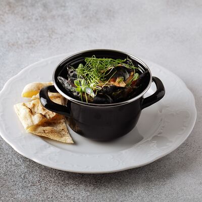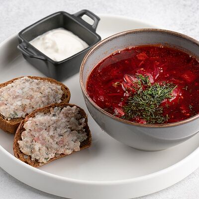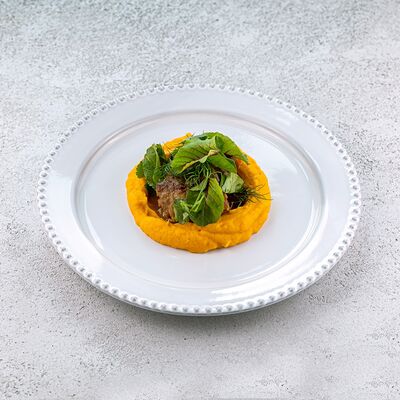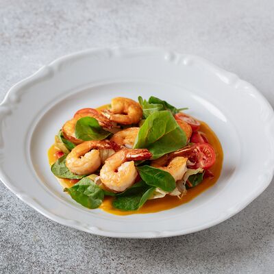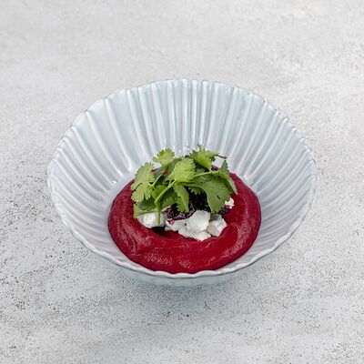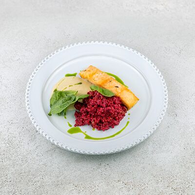 Булгур, лук, тимьян, чеснок, свекольный фреш, соус из чилийских мидий, шпинат, тимьян, смесь перцев, масло оливковое