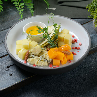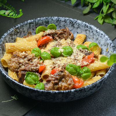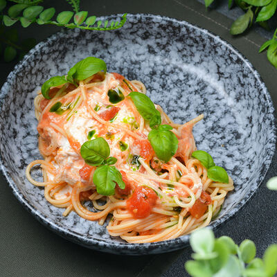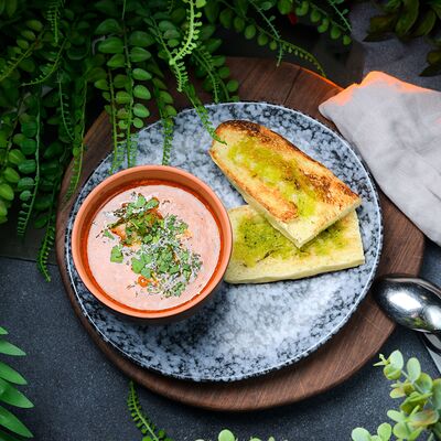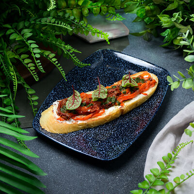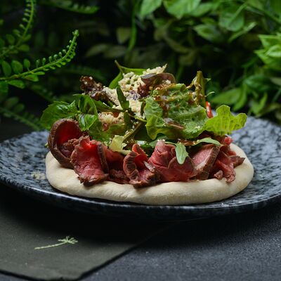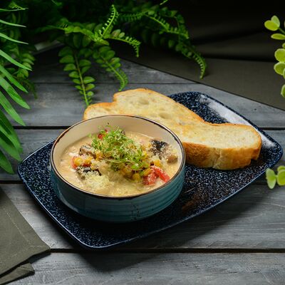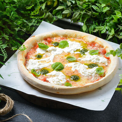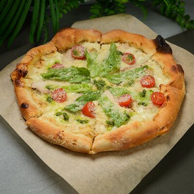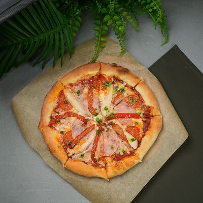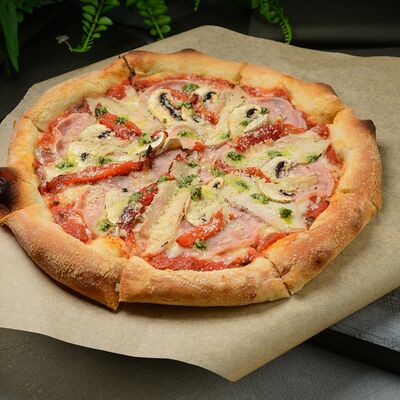 Соус томатный, ветчина, шампиньоны, перец печеный, сыр моцарелла