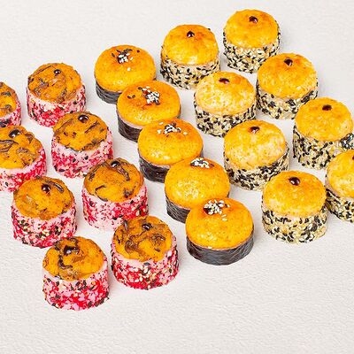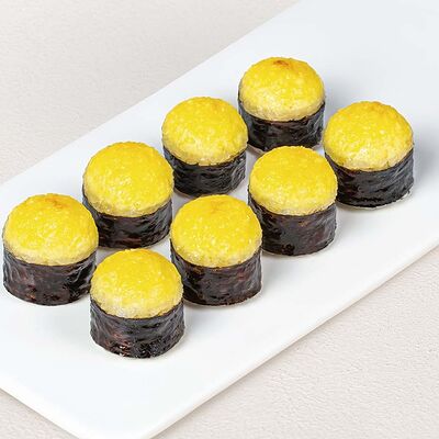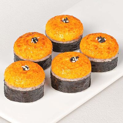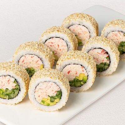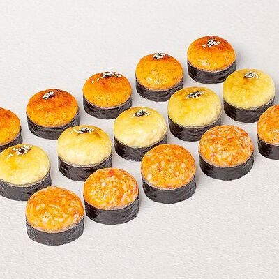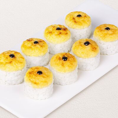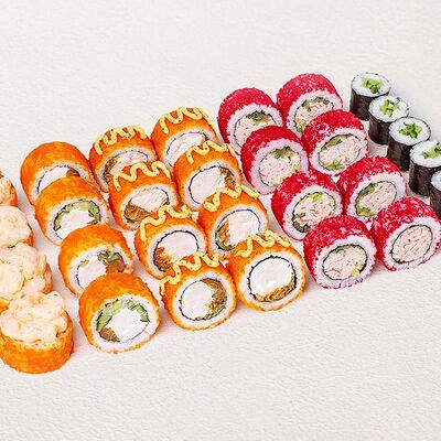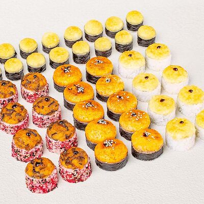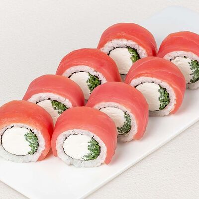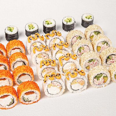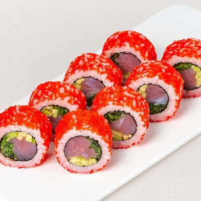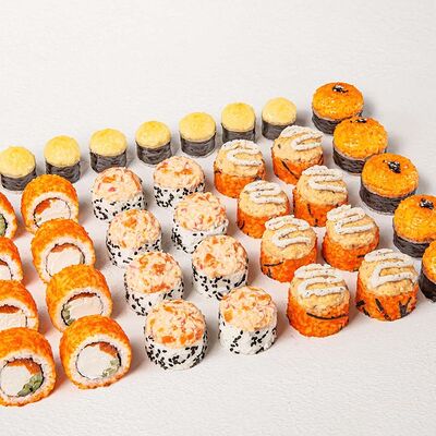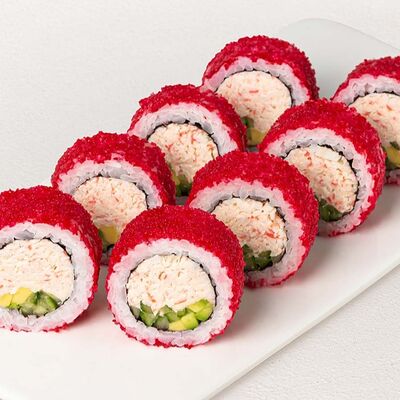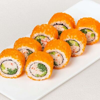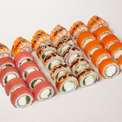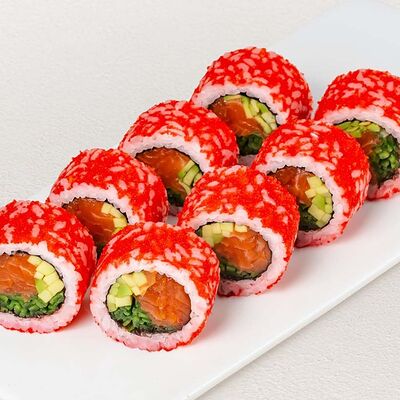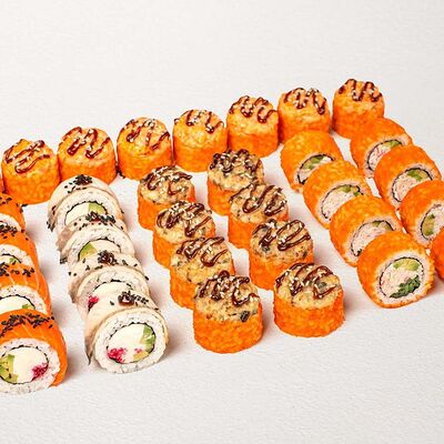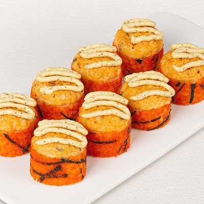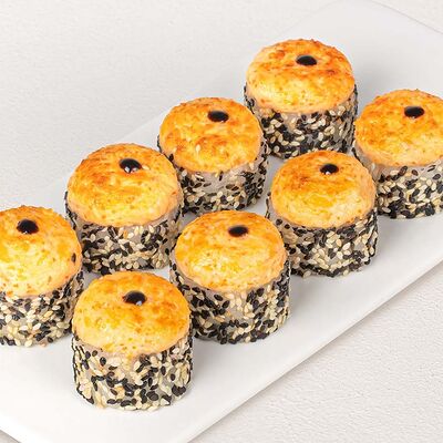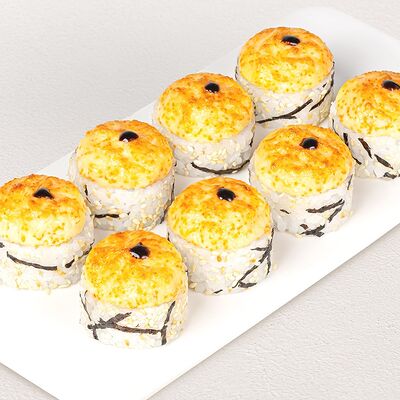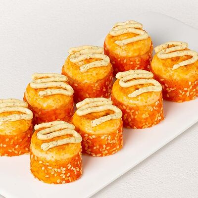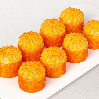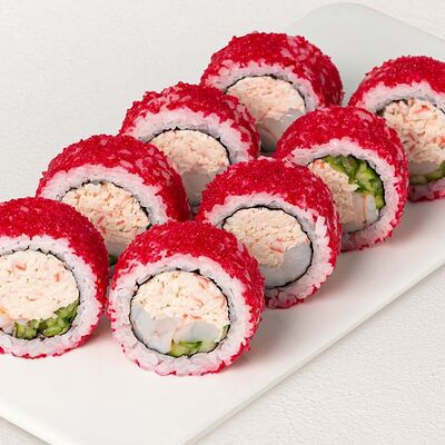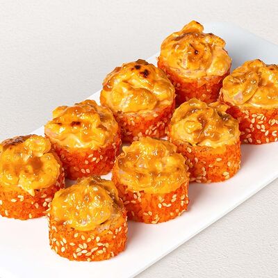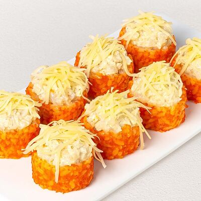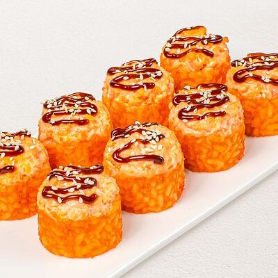 Креветки, сыр сливочный, яки соус, кунжут, унаги соус, масаго
