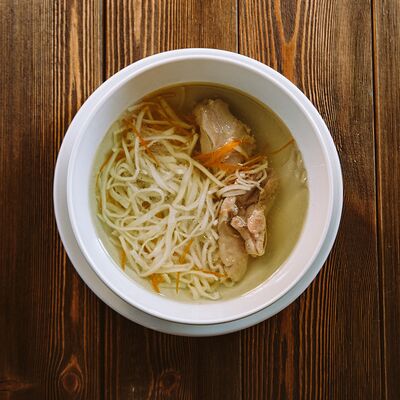 Легкий суп с куриным филе, домашней лапшой и морковью