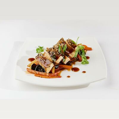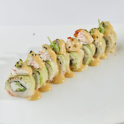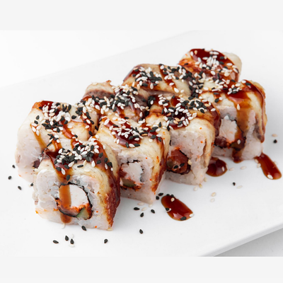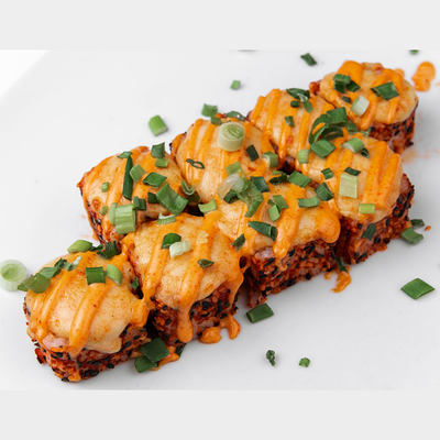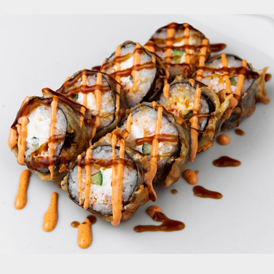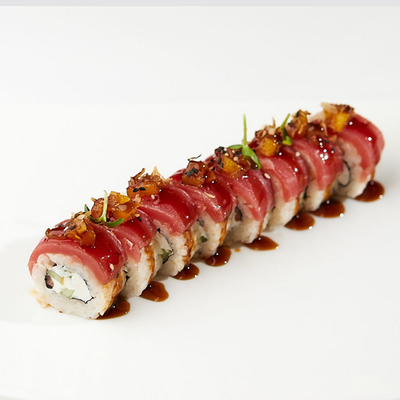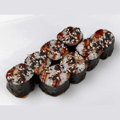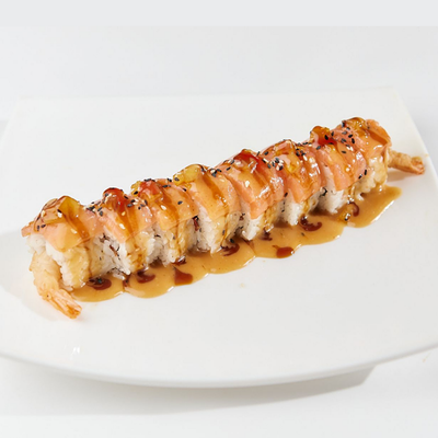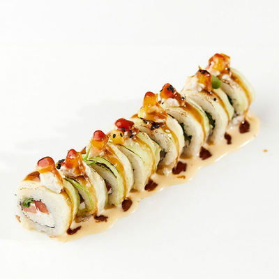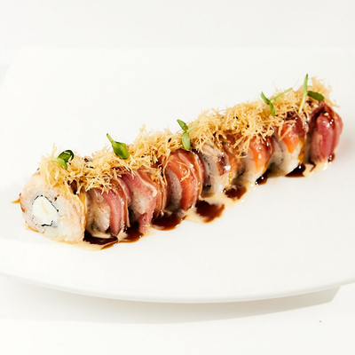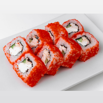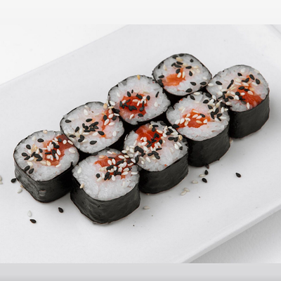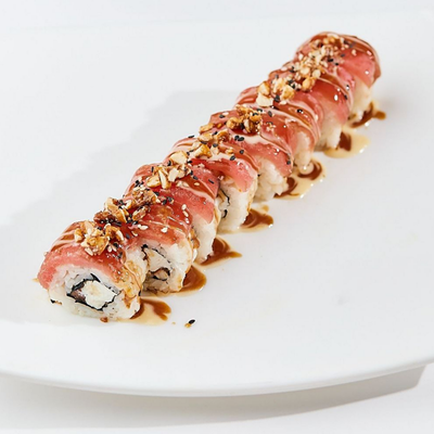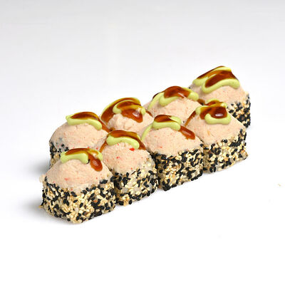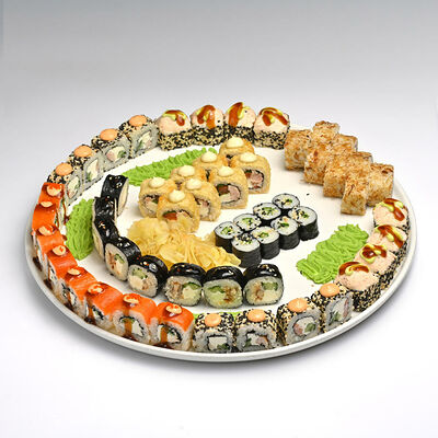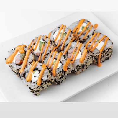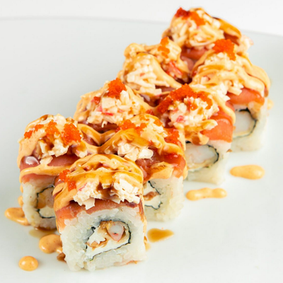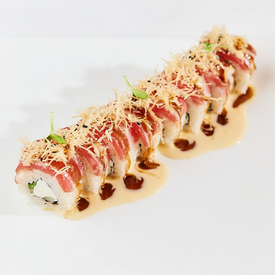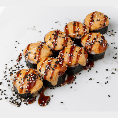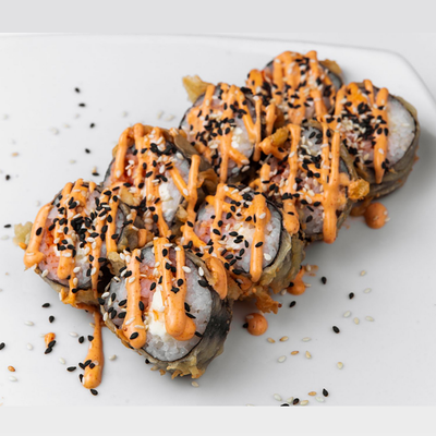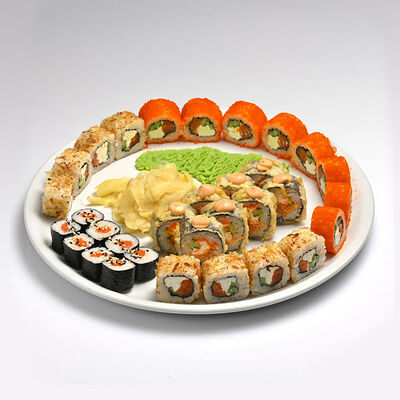 Филадельфия, Сакана, Копченый цыпленок с соусом спайси, Темпура с тигровой креветкой и соусом спайси, Ролл с тунцом