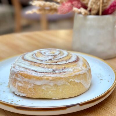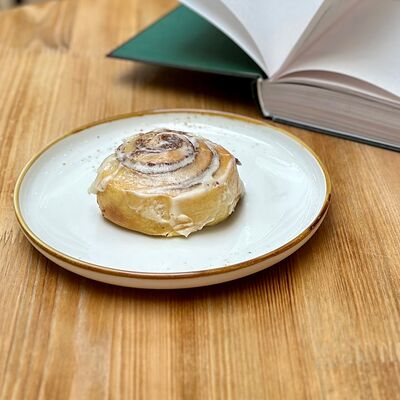 Фирменное сдобно-дрожжевое тесто, корица, сахар, глазурь на основе творожного сыра