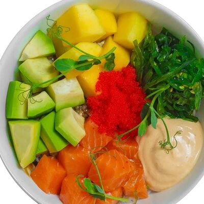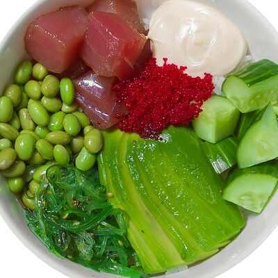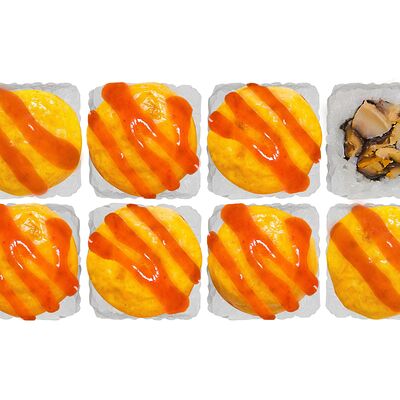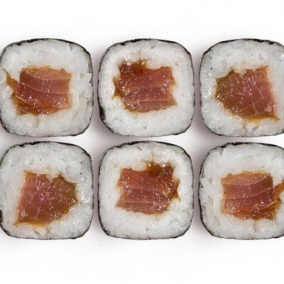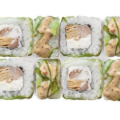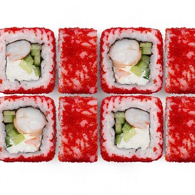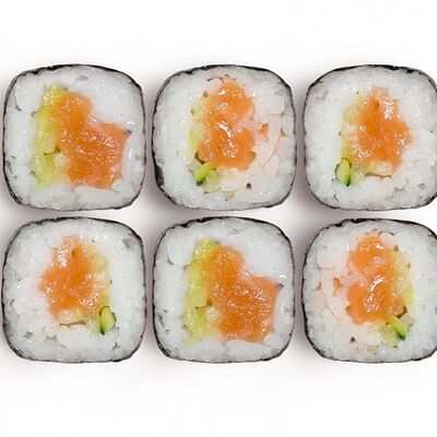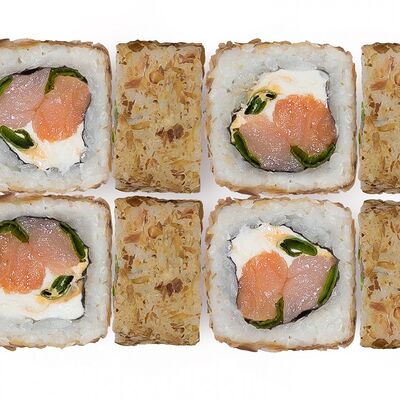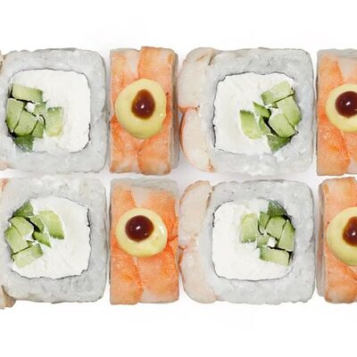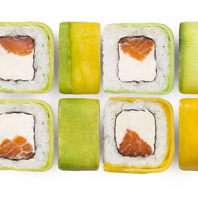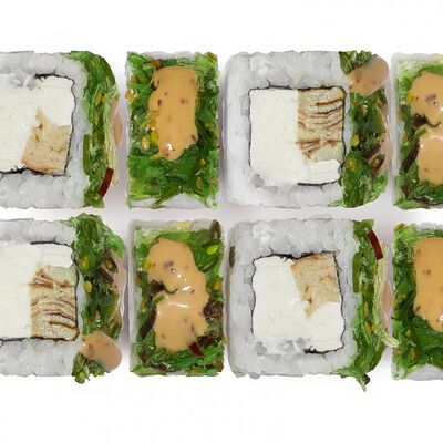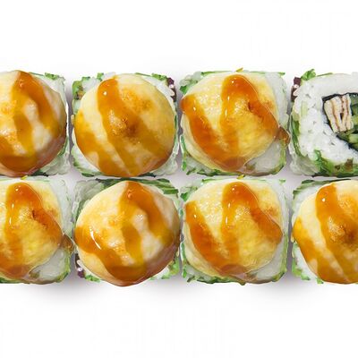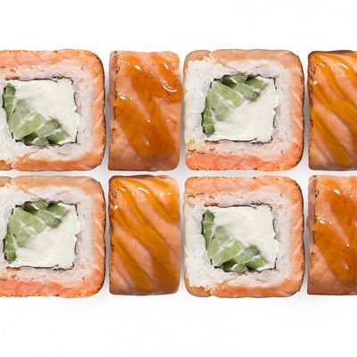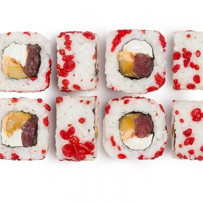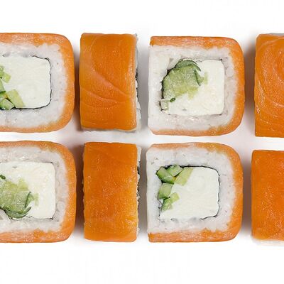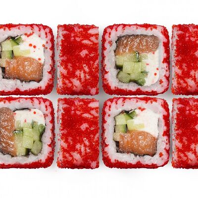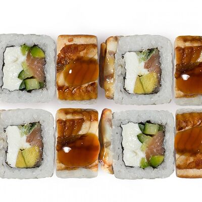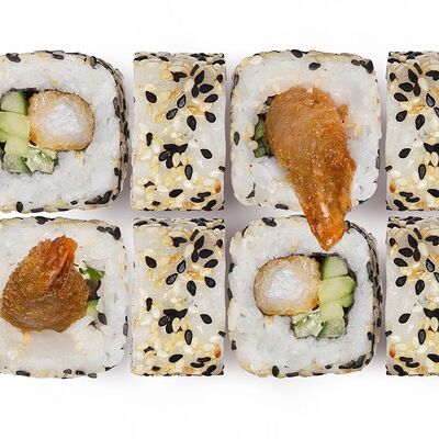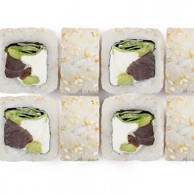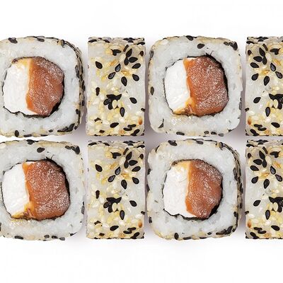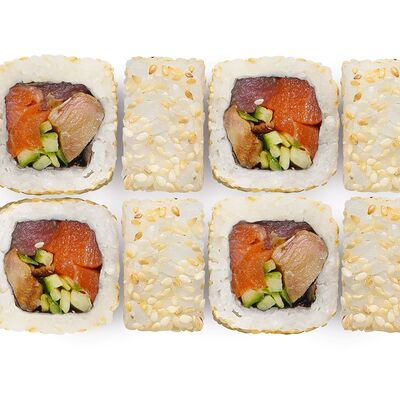 Лосось, тунец, угорь, огурец, кунжут. Ролл без сливочного сыра в начинке (8 шт.)