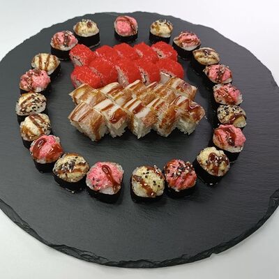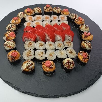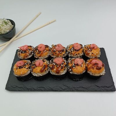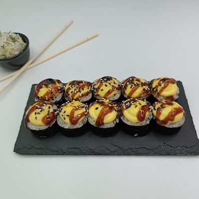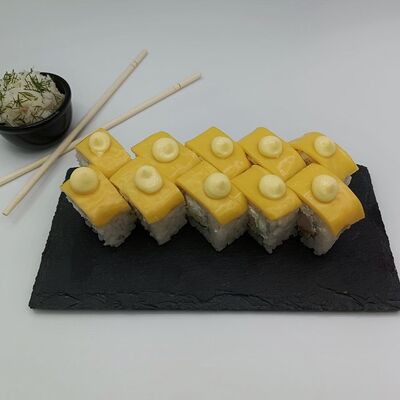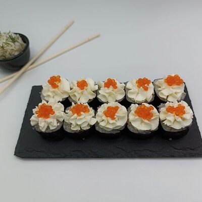 Рис, лосось, сыр сливочный, икра имитация (10 шт.)