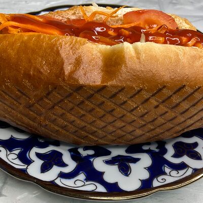 Лаваш, помидоры, огурцы, капуста, морковь, говядина, картофель фри