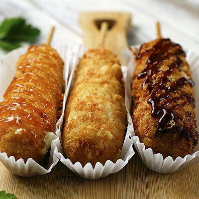 Сосиска, Сыр моцарелла, Сухари панко, Соус кисло сладкий