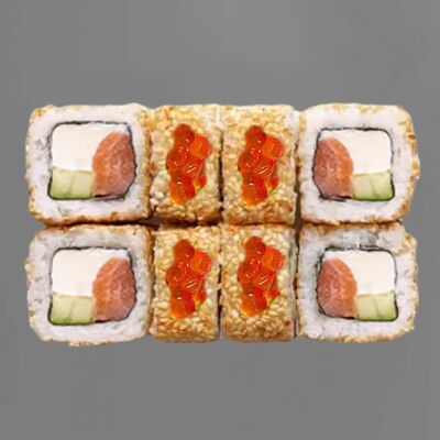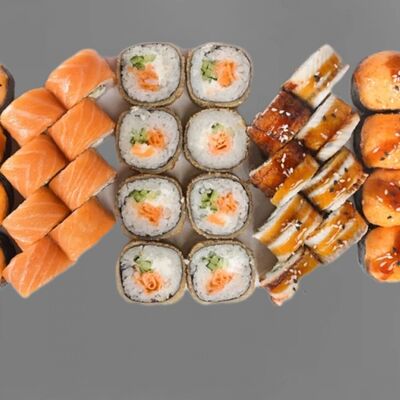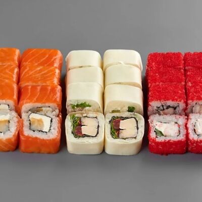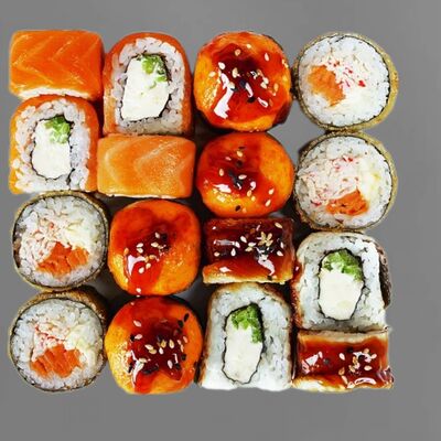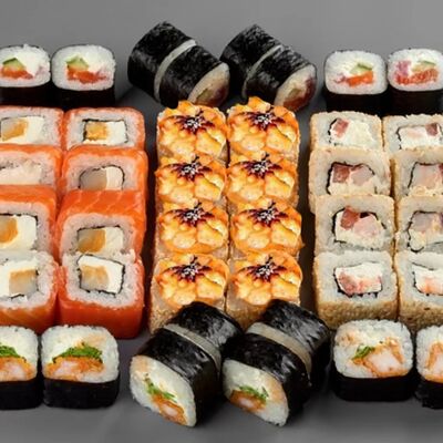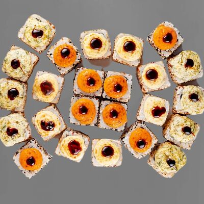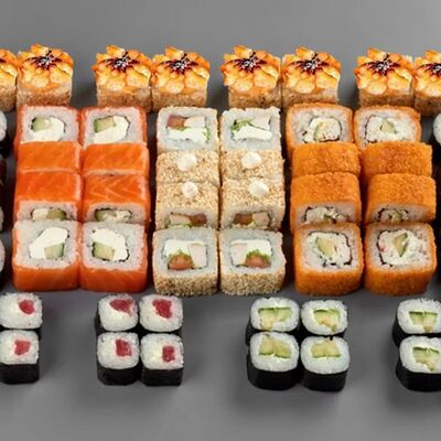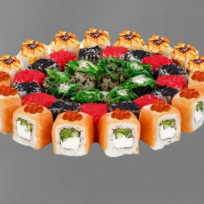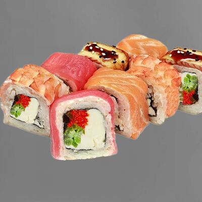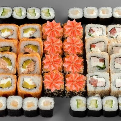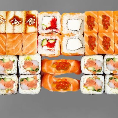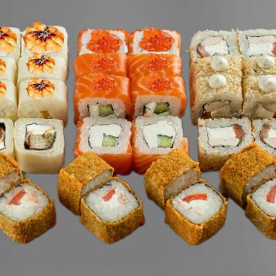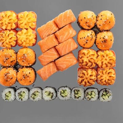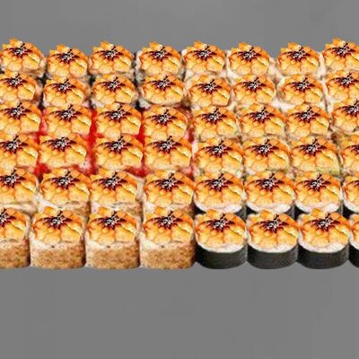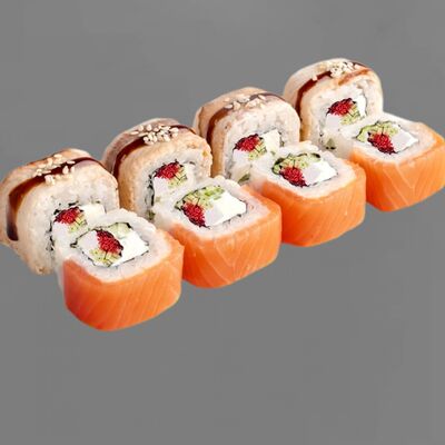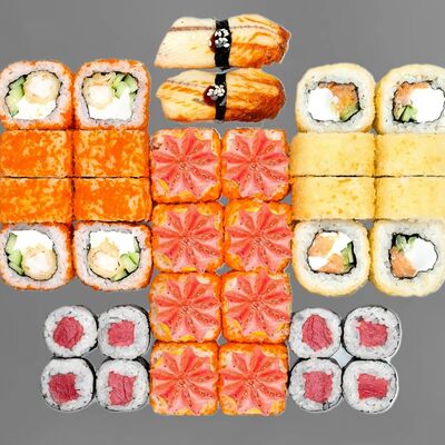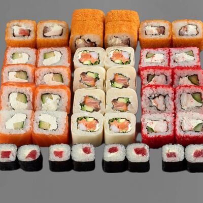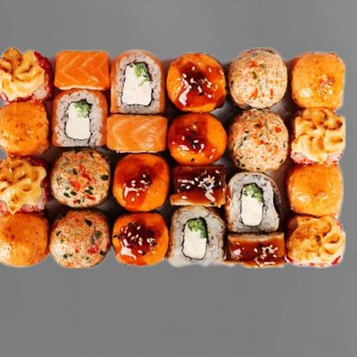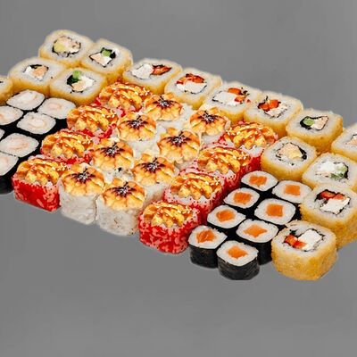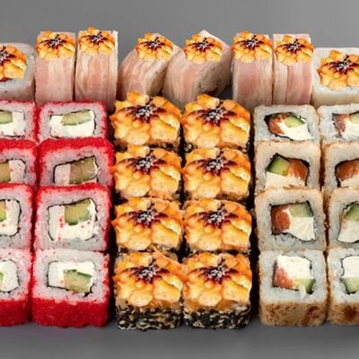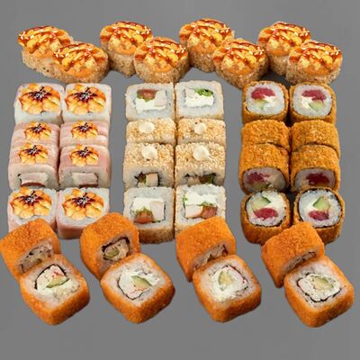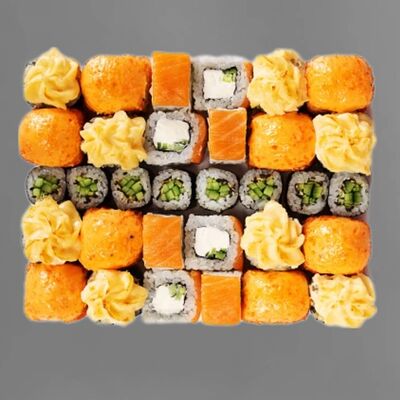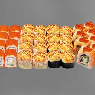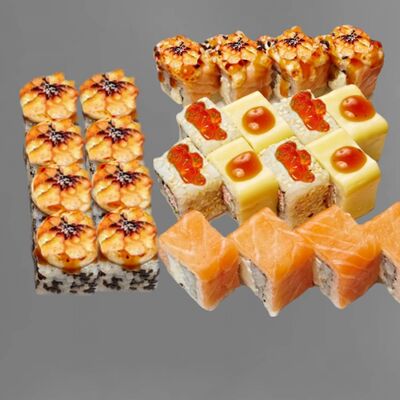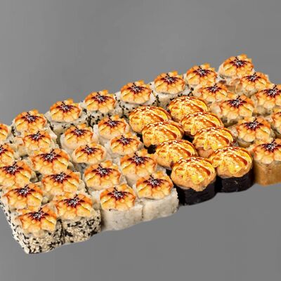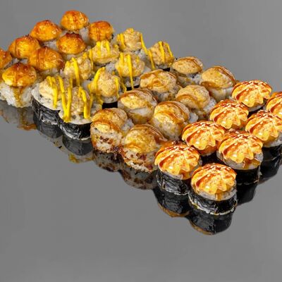 Филадельфия лайт, ролл Хоккайдо, Запечённый гурман, Хияши ролл, Запечённый с кальмаром (40 шт.)