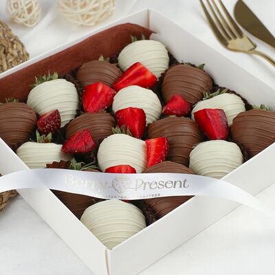 Клубника отборная, шоколад белый и молочный Бельгийский, клубника свежая