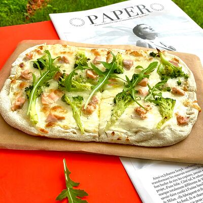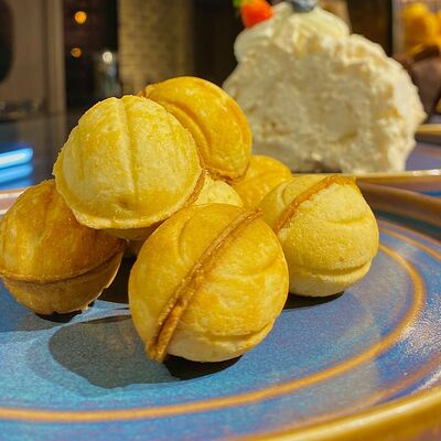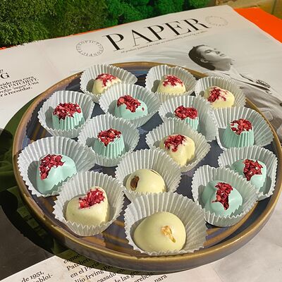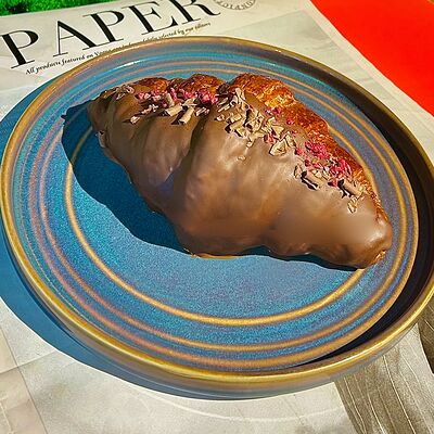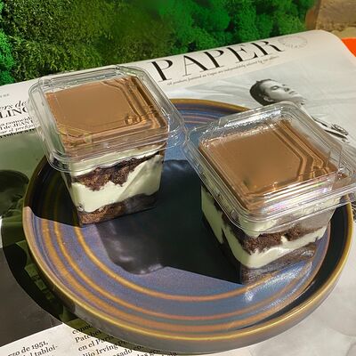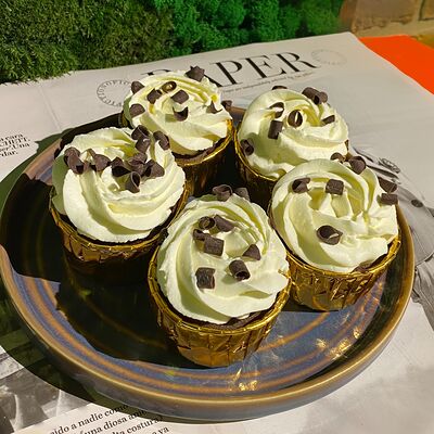 Тесто (мука, сахар, разрыхлитель, соль, какао, масло сливочное, кефир, молоко), крем (крем-сыр, сливки, сгущенное молоко, сахарная пудра, начинка (бельгийский молочный шоколад, сливки 35%), шоколадная крошка