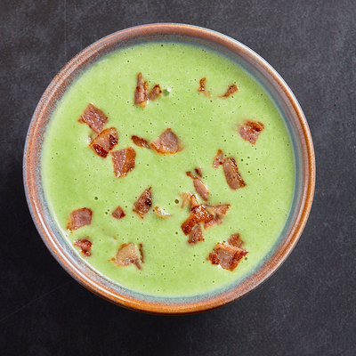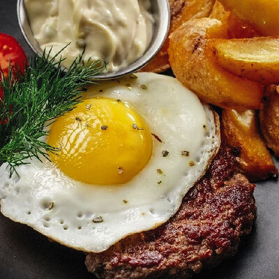 Куриная грудка, бекон, зеленый горошек, куриное яйцо, шампиньоны